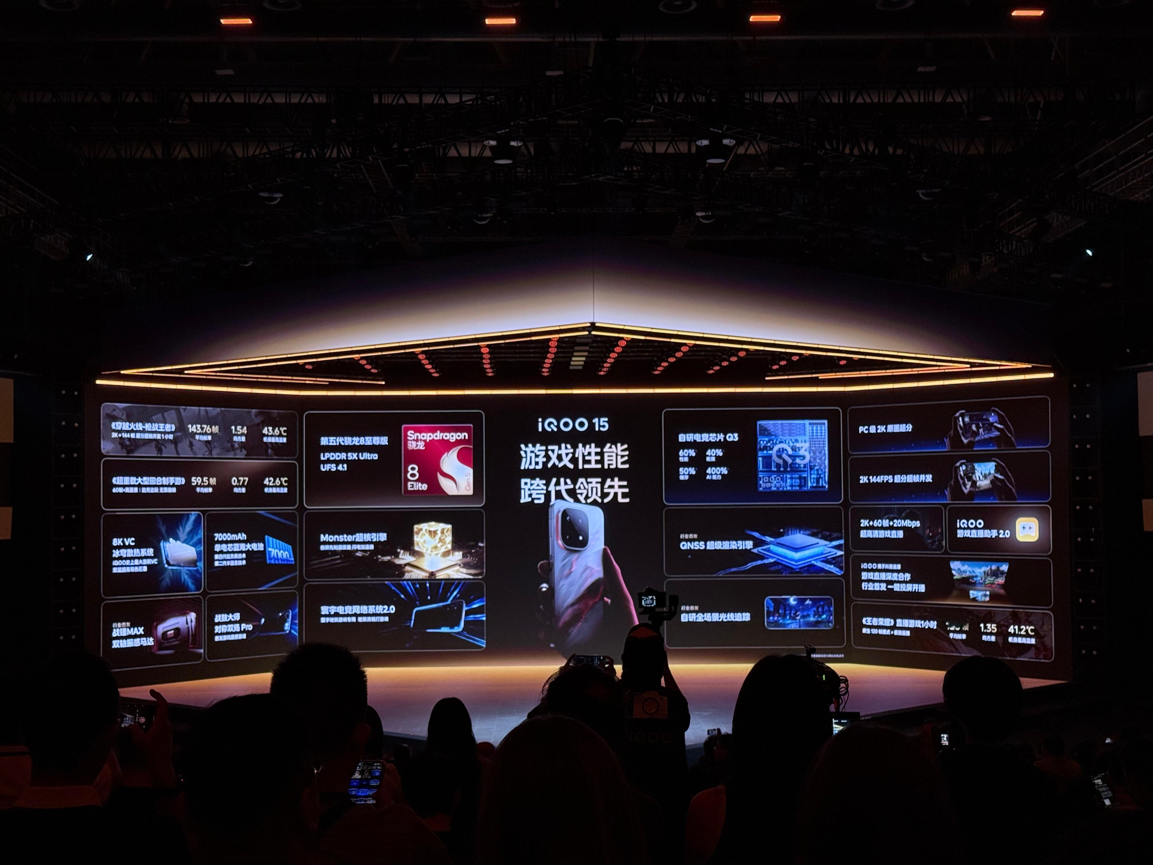 iQOO15 这波性能真是跨代起飞!搭载第五代骁龙8至尊版,配合LPDDR 5X Ultra内存和UFS 4.1闪存,组成性能铁三角,彻底释放满血战力。更亮眼的是自研电竞芯片Q3和QNSS超级渲染引擎,实现全场景光追和2K+144帧超分超帧并发,游戏画面又丝滑又真实。再加上7000mAh蓝海大电池、8K VC冰穹散热系统和寰宇电竞网络2.0,全程高能不掉线——这游戏体验,稳了!