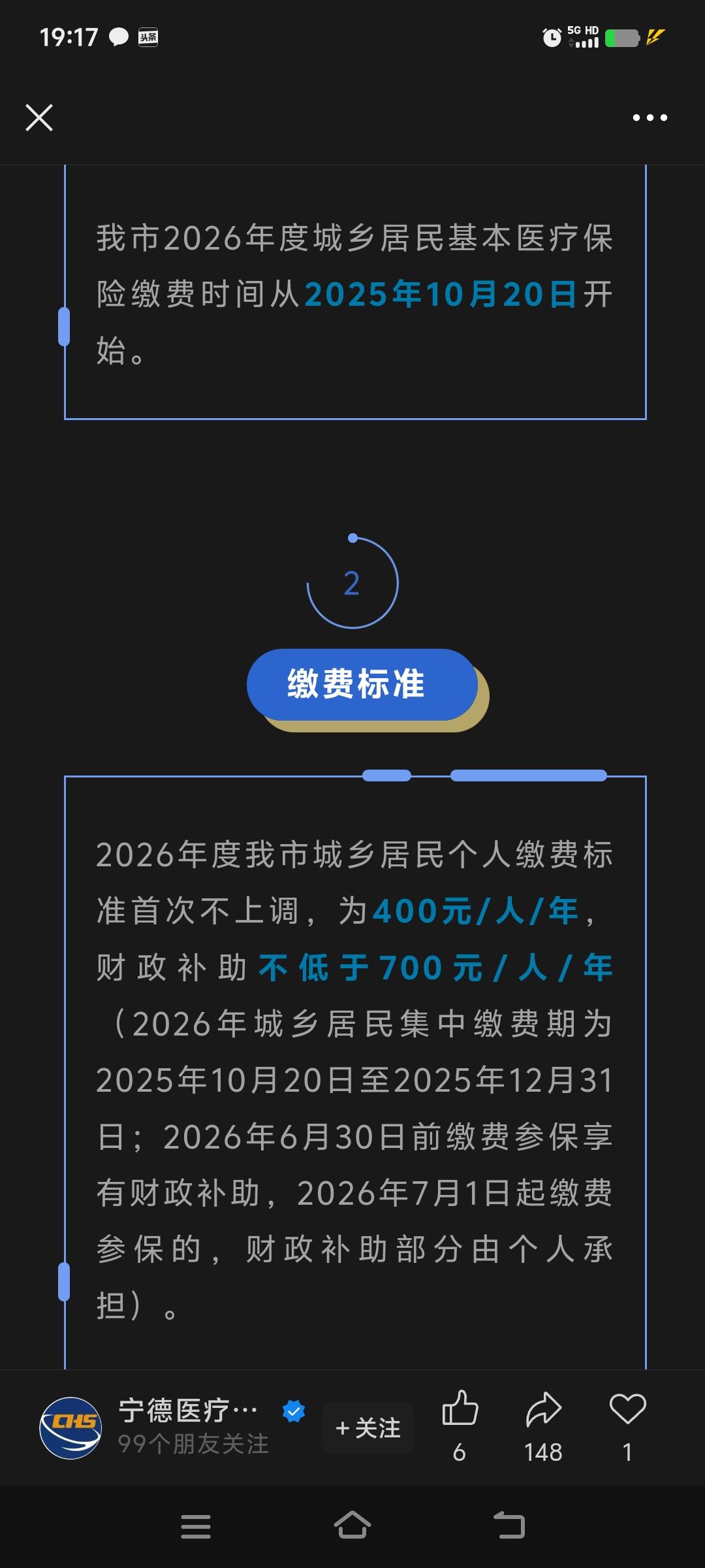 2026年的医保缴费开始了,今年还是400块钱。 确实对于很多农村六口家庭(爷爷奶奶父母子女)来说,一下子掏出6*400=2400元,有点心疼。 但是医保还是非常有必要的,他们家庭条件好的还买商业医疗保险,我们穷人家买个基础医保是最基本的保障,而且国家还有财政给我们补助了很多,也就是说这个医保原来的价值可不止是400元。 大家觉得400块钱算不算贵呢? 我个人认为,越是家庭贫困,越要买医保! 乡村医保缴费 医保400元 医保你交了吗