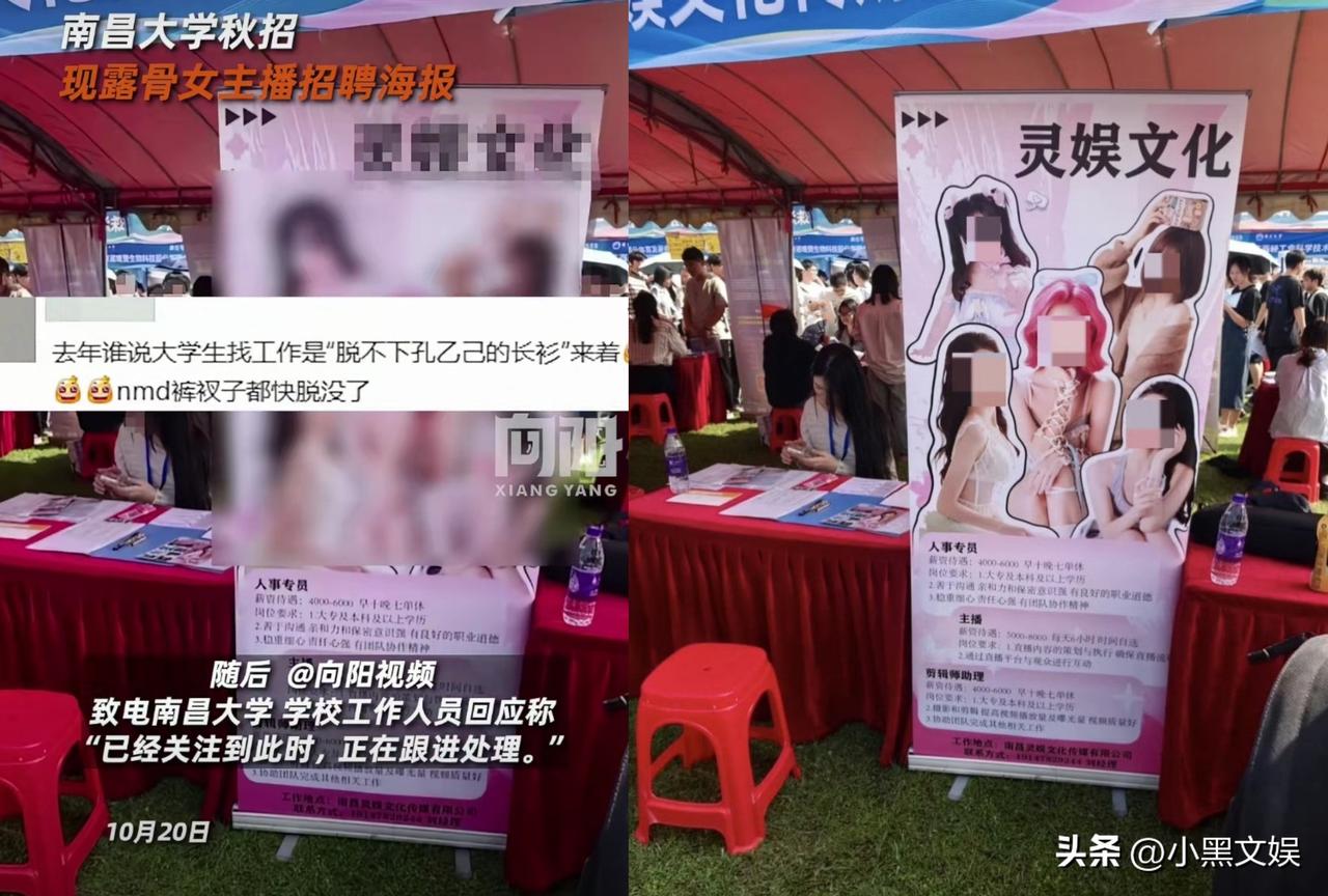 这是正规招聘吗? 南昌大学校园招聘惊现露骨海报, 校方紧急道歉! 也不知道这样的企业是怎么同意进入校园招聘的,知道是招聘主播的,不知道还以为是招聘那啥的…… 校方也是道歉说明了这是他们审核不严造成的。不知道大家是怎么样看待这件事情的。