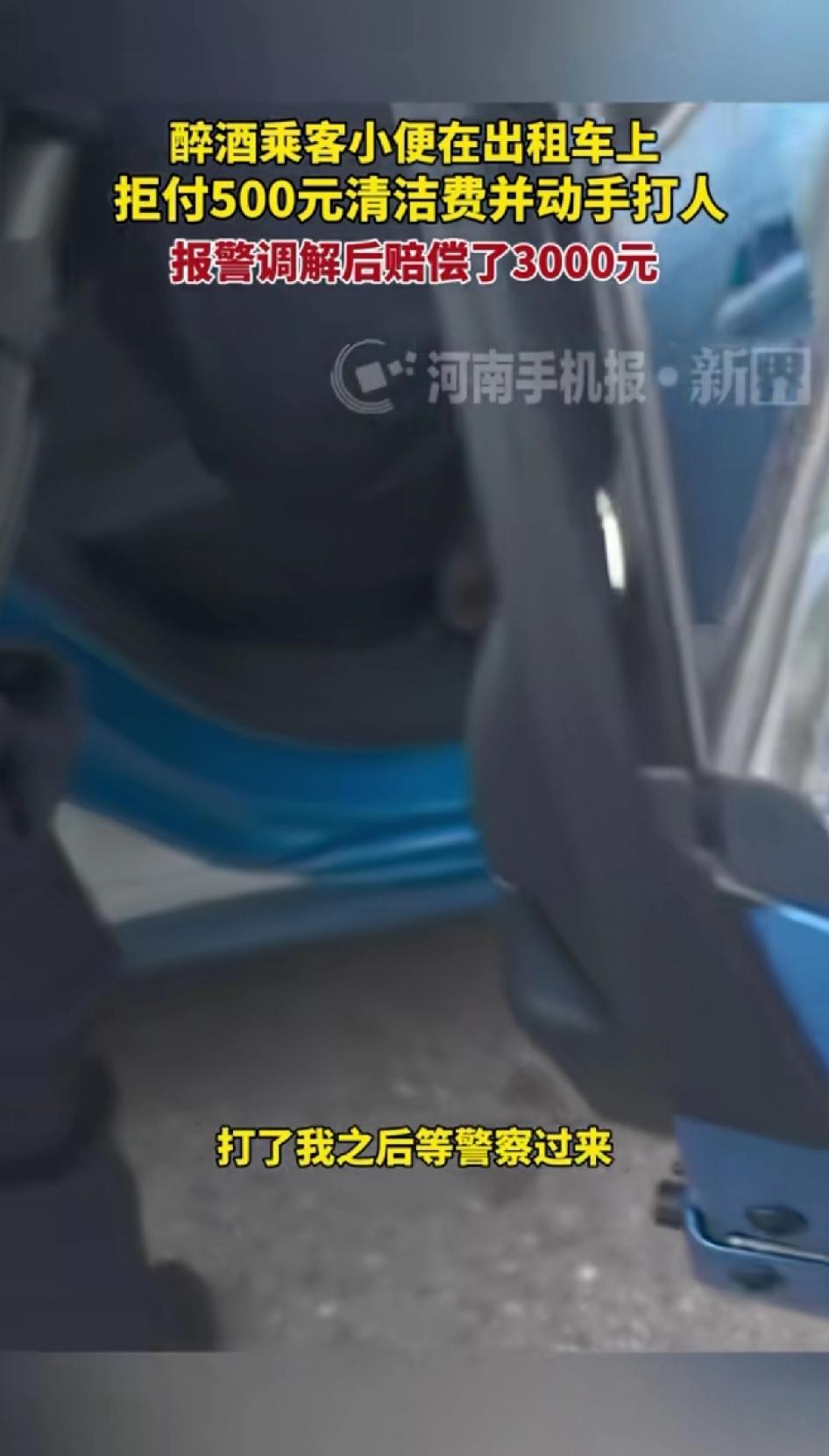 醉酒乘客在出租车上小便后,拒付500元洗车费并动手打人! 山西太原,一出租车司机