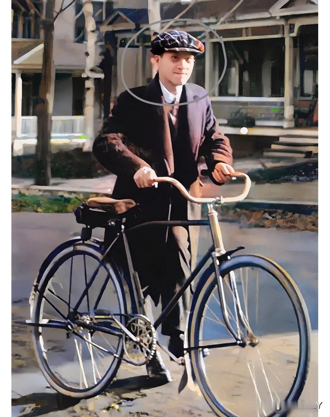 一张老照片,拍摄于1921年的英国剑桥大学,大家看看穿着时尚骑自行车的这人是谁!这才是他年轻时的真实样貌,不是演员饰演的!猜猜他是谁?有认识的么