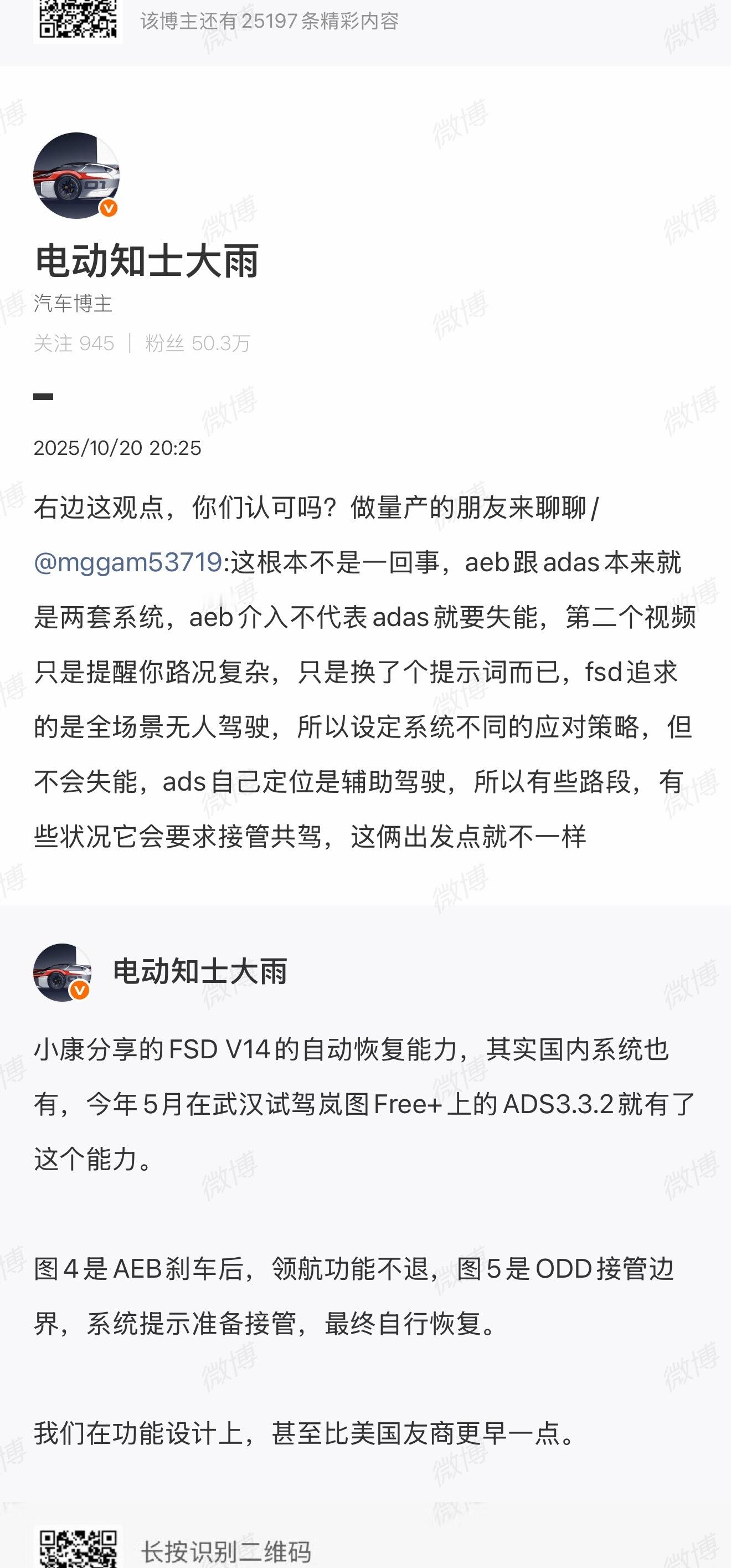 我虽然没做过研发,但我开过的方案太多了。蔚来、理想、小鹏、小米、Momenta、早期的ADS版本,AEB踩停后,智驾都会退出,这是我亲身体验过的。