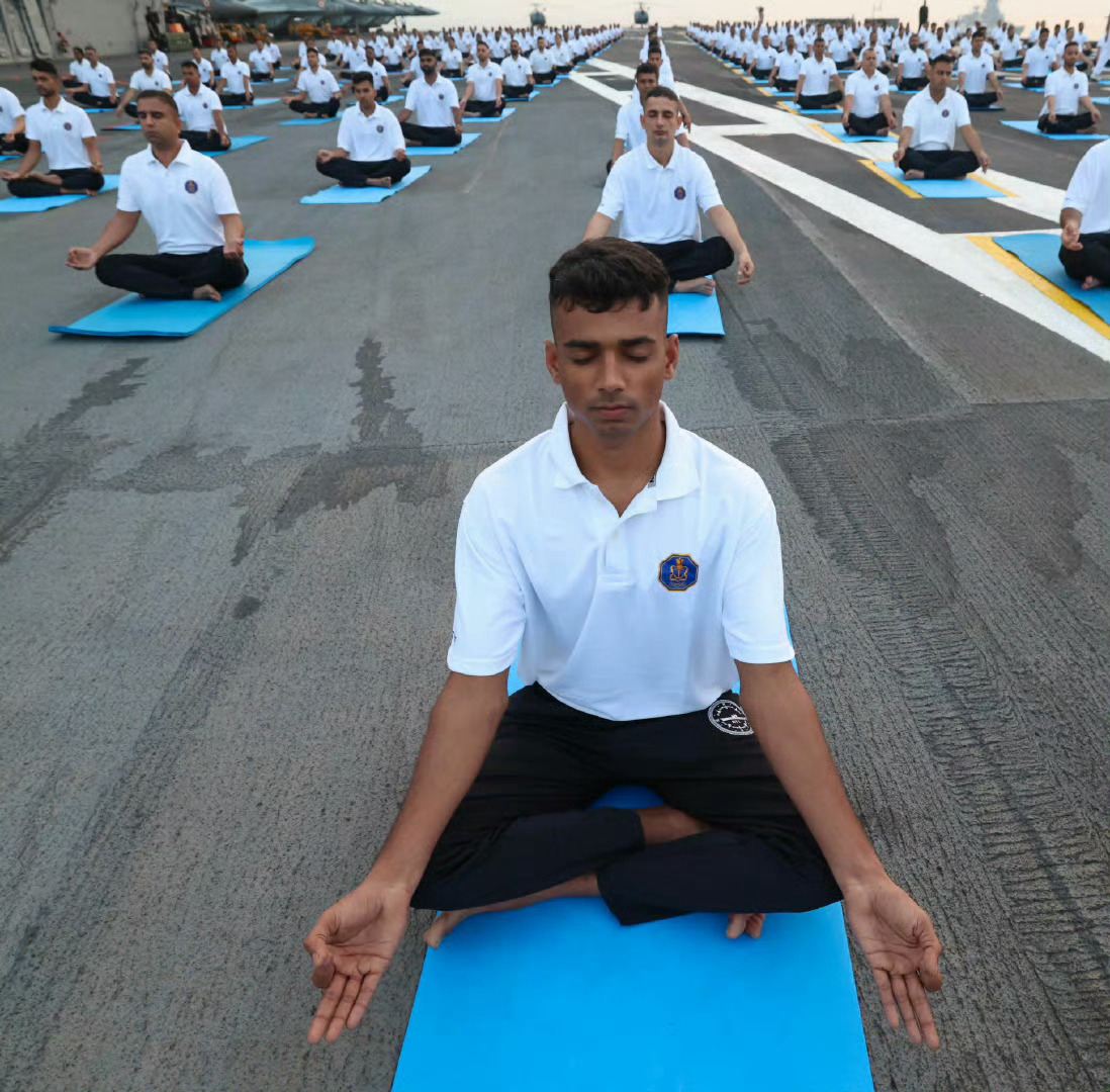 印度航母的集体瑜伽,