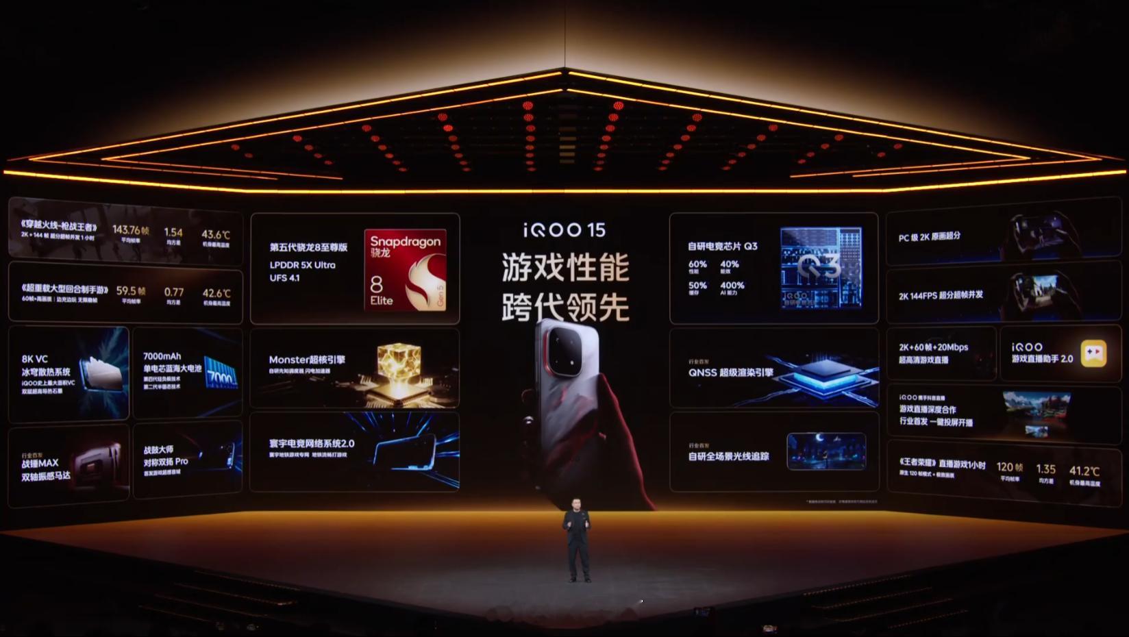 在游戏沉浸体验上,iQOO 15 通过战鼓大师扬声器、战锤MAX 双轴马达及能量光环灯带,构建了全方位的感官体验。