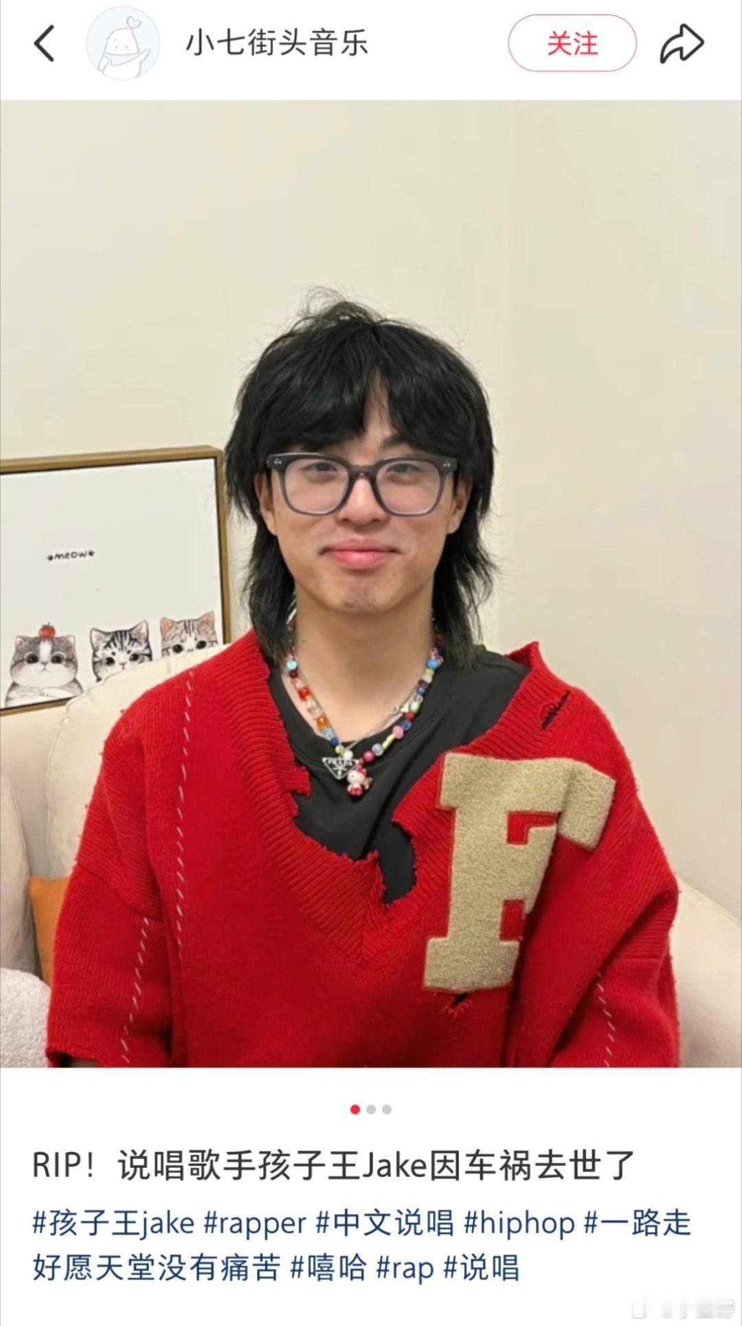 据传,中国rapper说唱歌手孩子王Jake车祸去世