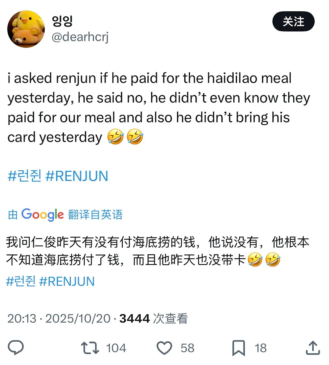 黄仁俊粉丝说的海底捞买单宠粉原来是罗渽民和李楷灿付的钱 好尴尬吧…