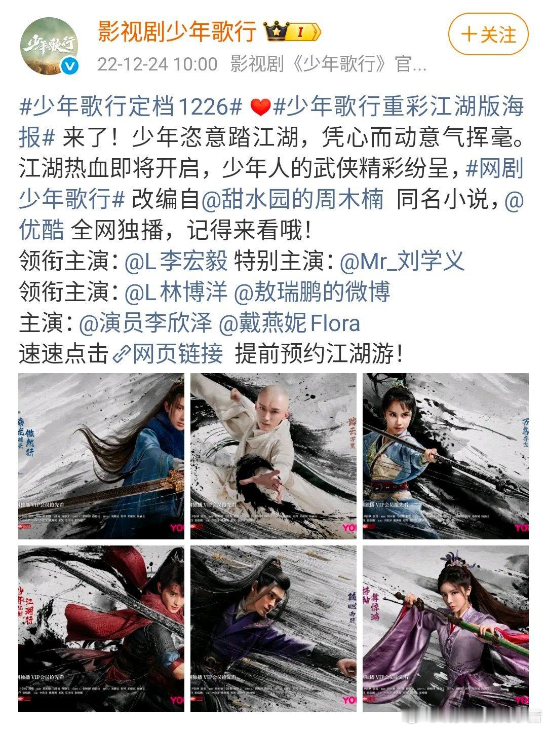 李宏毅少年歌行还是播得太好了,现在又拿出来翻炒讨论,再怎么样都改变不了一番男主萧瑟近年来武侠剧就是最出圈的吧[流鼻血][流鼻血]