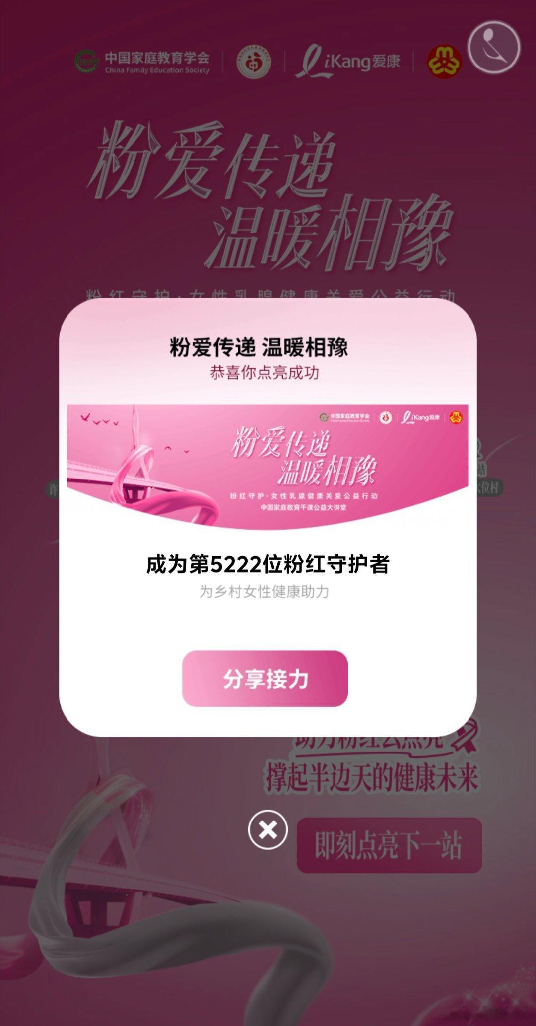 女性健康关爱行动 粉爱传递 温暖相豫 我刚和、一起,点亮了粉红义诊地图,助力 女性健康关爱行动 走进河南焦作,开启“10天10村”公益义诊行。快来一起参与粉红云点亮,守护乡村“她健康”!关注每个人的健康!我是第5222位支持者!健康