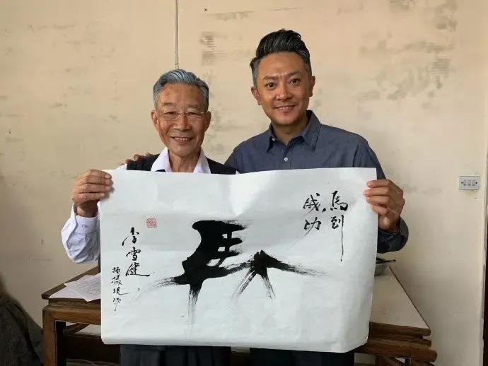 镜头中的老戏骨李雪健身形消瘦,头发花白,气色盈和,笑容可掬;没想到的是一旁的印小天竟然也是两鬓略白,眉心纹路明显哈! 更没想到的是李雪健老师的书法作品大气鼓荡,浑然天成,独树一帜,只怪自己眼拙,中间这个字居然没看出是啥字,你知道吗?