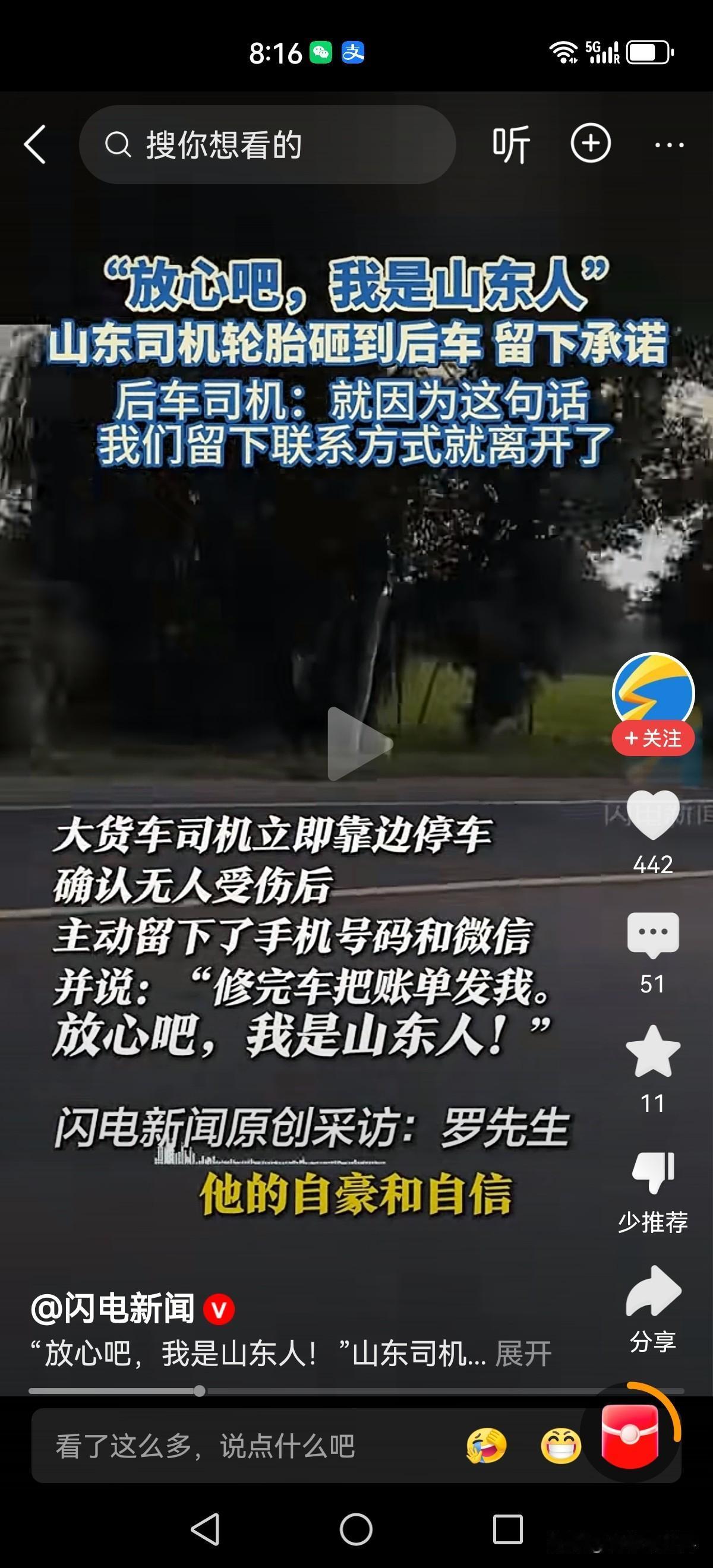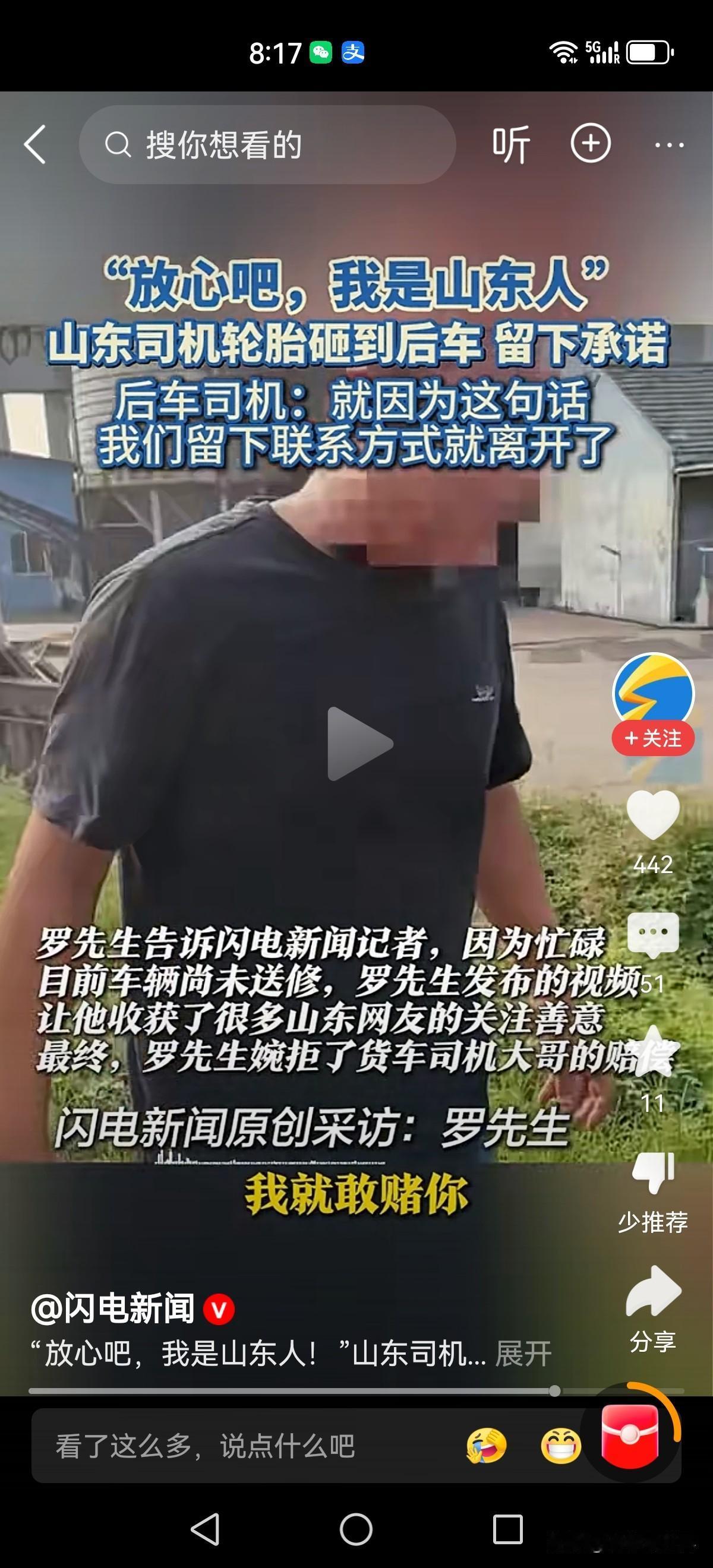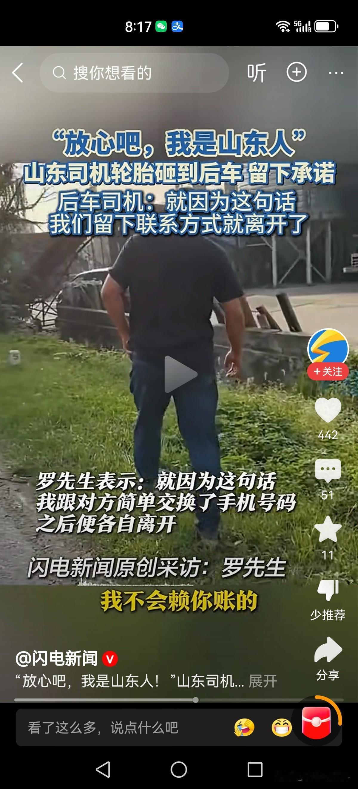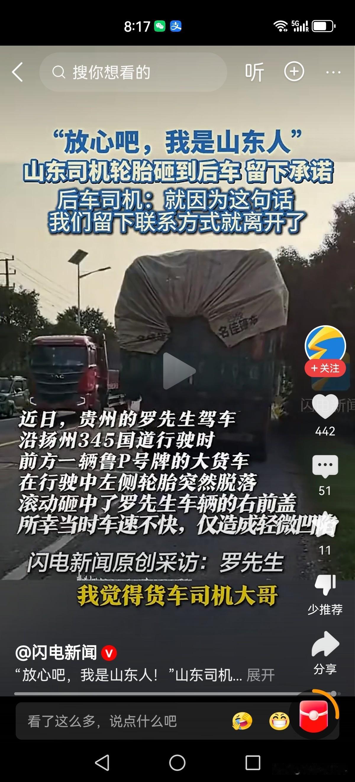 “放心吧我是山东人”!这就是响当当的品牌,一句话就让人放下戒备,放心离开。 近日江苏扬州。贵州车主罗先生驾车行驶在345国道。突然前面的鲁p牌大货车左侧轮胎脱落,滚动中砸到了后车左侧前盖。 大货车司机马上靠边停车,在确认无人员受伤后留下了电话号码和微信号。“修完车把账单发给我。放心吧,我是山东人! 罗先生也没犹豫,随后各自驾车离开。在被问到万一他消失不见了,你找谁去赔? 罗先生坦言“他自己说这句话的时候都透露着自豪。凭我对山东人的了解,我敢赌!” 这就是响当当的品牌—实在,靠谱!山东人 山东人形象 山东人口头禅 鲁d车牌 我是山东我骄傲 鲁c车牌 鲁x车牌