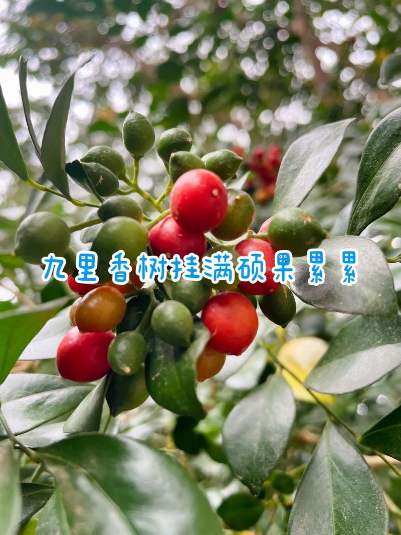 九秋香花开娇艳,惹人喜爱;果实累累,红彤彤带来喜庆气氛,让人爱看耐看,同时欢乐心