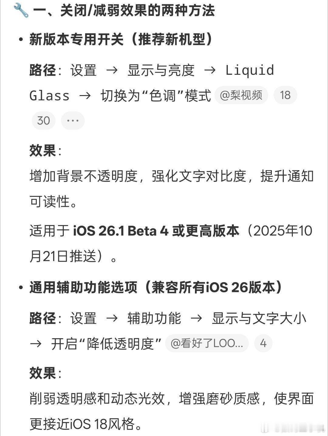 iOS26液态玻璃效果能关了个人觉得液态玻璃效果还可以,觉得看不清字的,可以通过