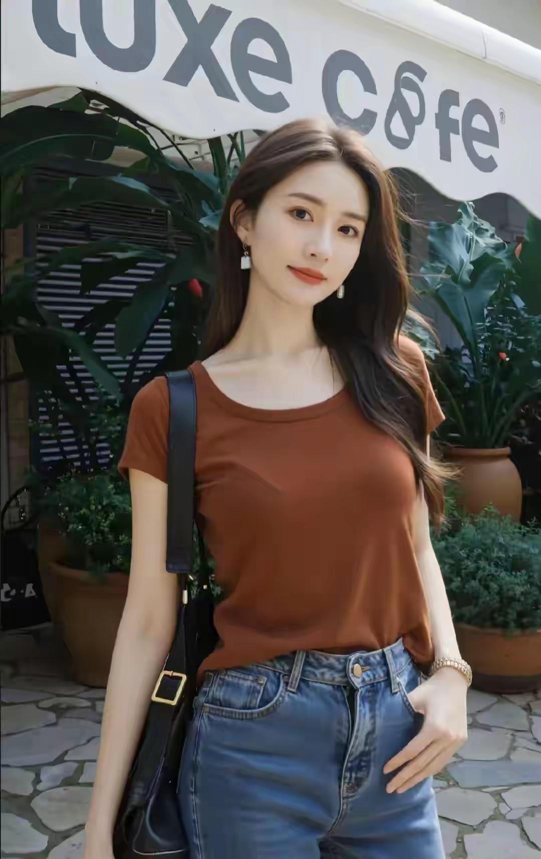 《鹧鸪天·都市佳人》 棕衫牛仔衬日常,咖啡屋畔意徜徉。 耳间环佩流光转,裙角风轻带浅香。 抬眸处,小园芳,绿植幽径映晴光。 一颦一笑皆成景,自在悠然岁月长。