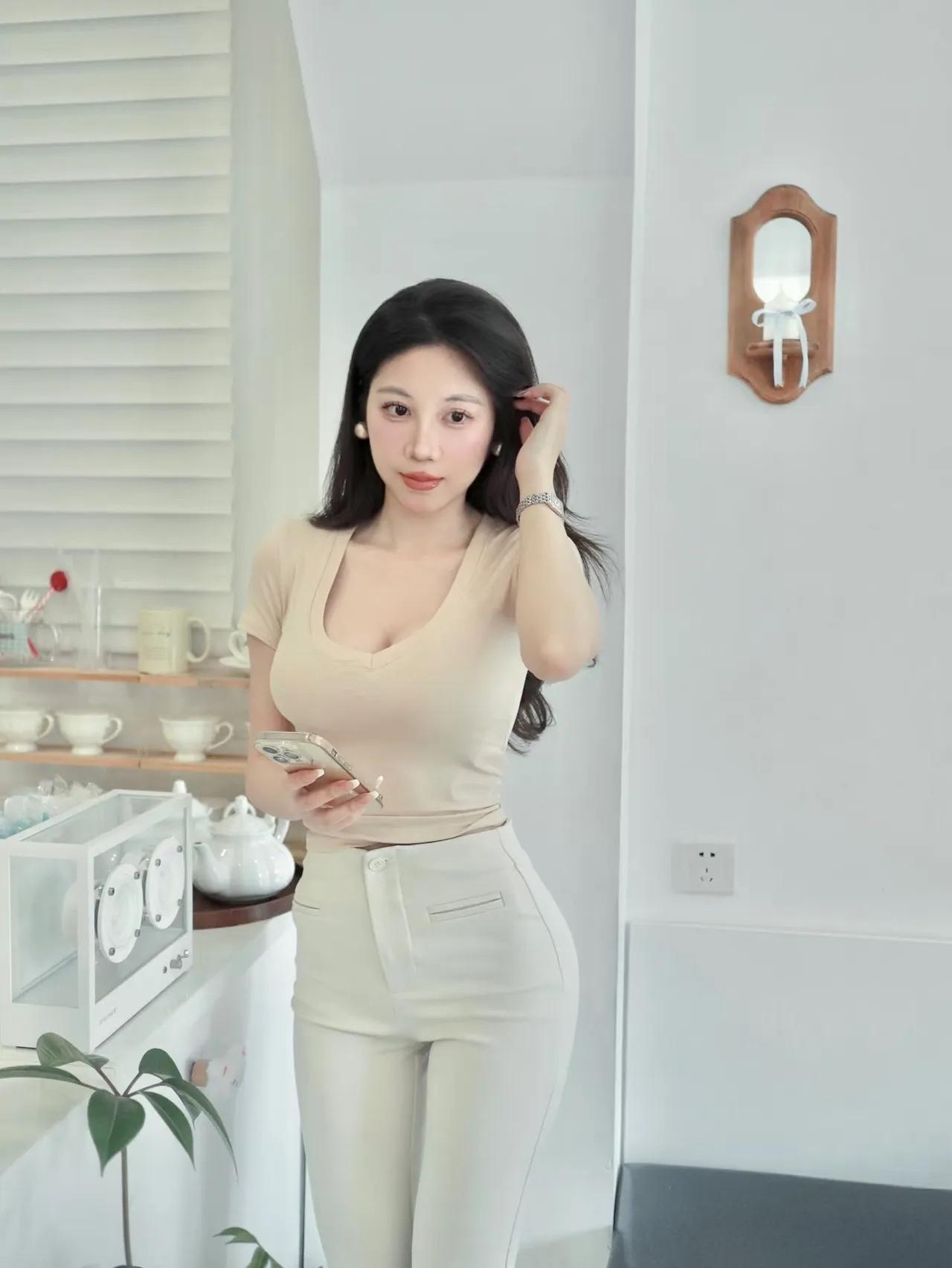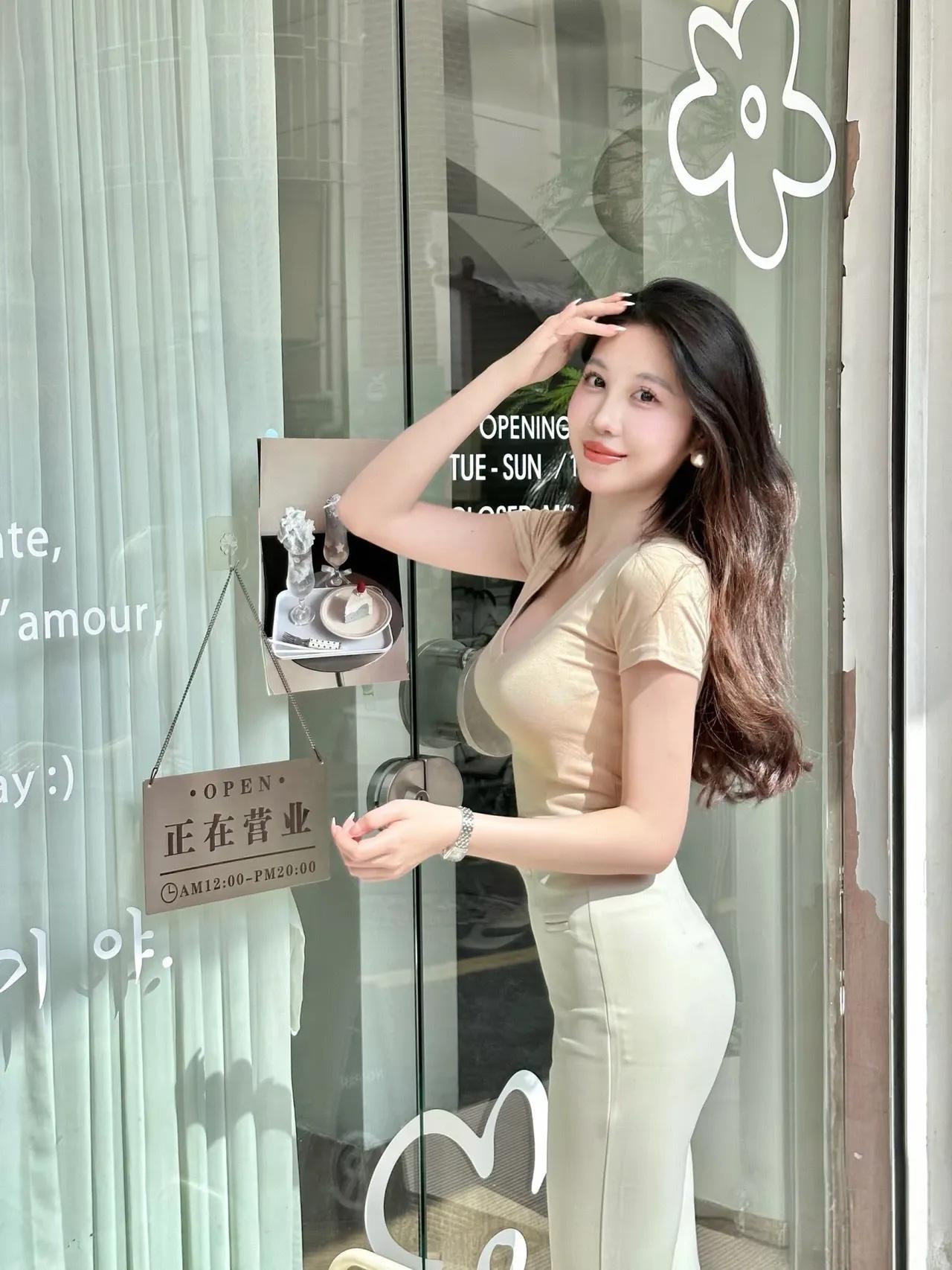 《清平乐·都市芳影》 晴光满室,浅褐衣装适。 素手拨云发如织,漫惹风情闲逸。 小店外,花影轻,咖啡香里驻芳形。 一抹温柔如蜜,都付午后光阴。 《阮郎归·浅夏伊人》 浅棕衣袂衬清柔,纤手挽云头。 明窗小店意悠悠,花影落银眸。 风淡淡,日悠悠,芳踪画里留。 一颦一笑韵难收,风情漫巷楼。