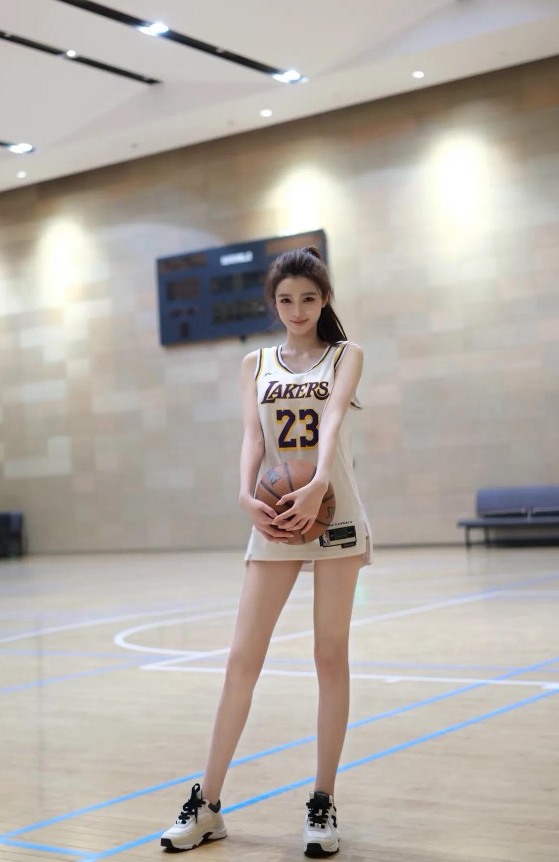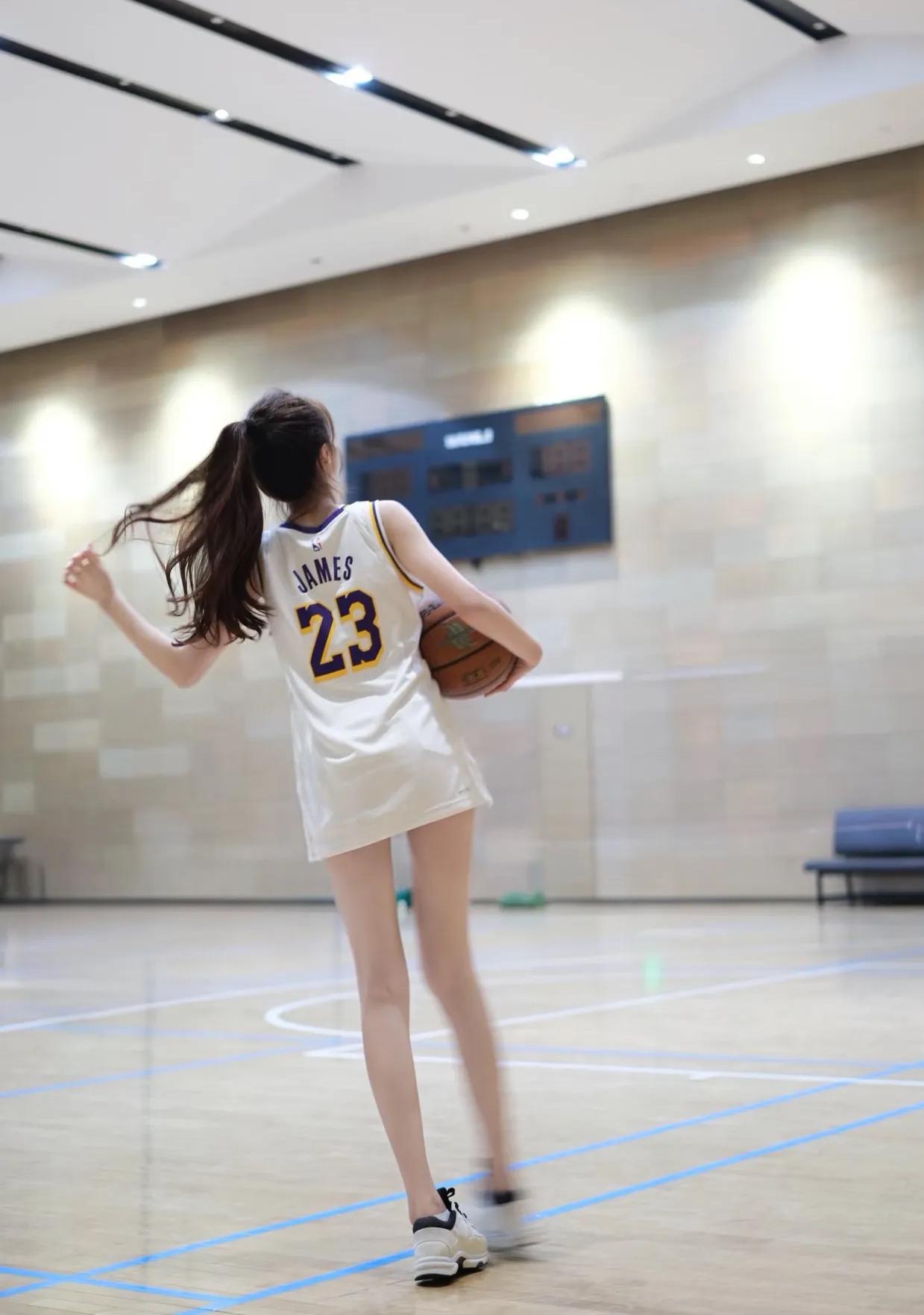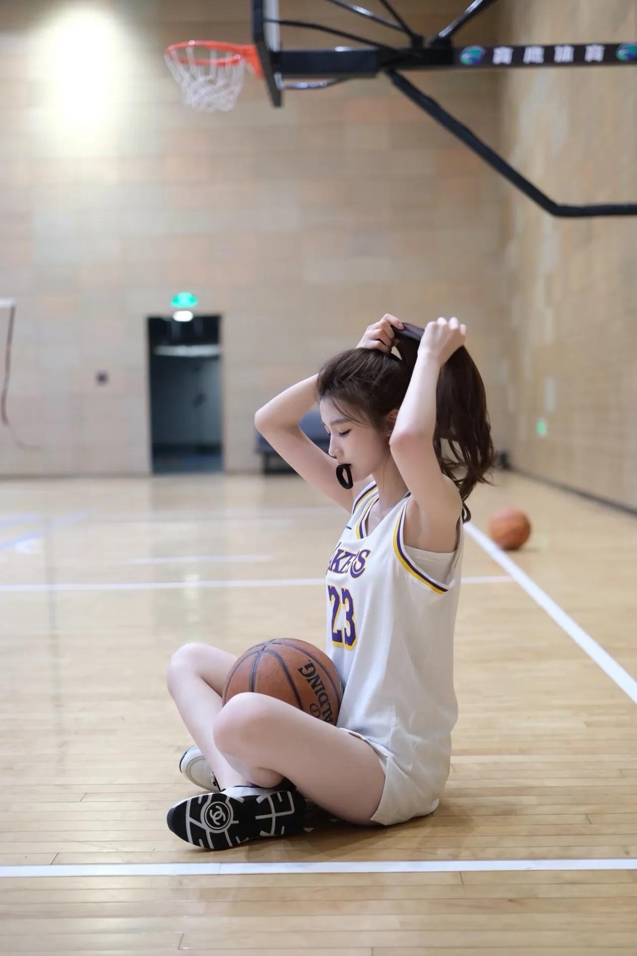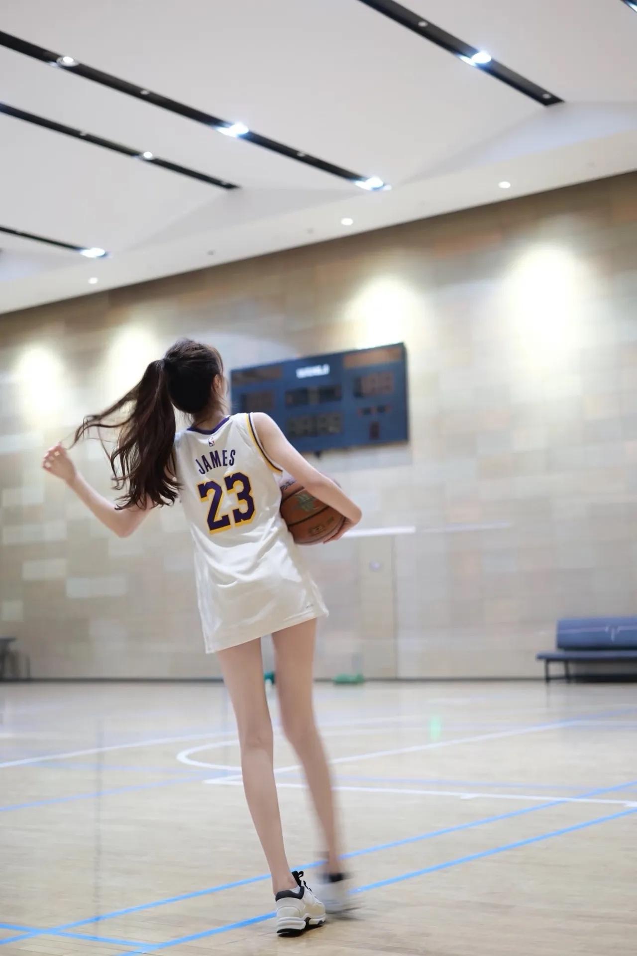 《西江月·篮球倩影》 球馆灯明木朗,球衣色洁风轻。 侧身持械韵尤生,一笑眸如星映。 马尾倏然风动,纤姿别样神凝。 篮球场上显娉婷,恰似流莺初醒。 《篮球场上俏佳人》 白衫轻趁篮球馆,巧抱花球意态真。 马尾风扬姿曼妙,恍如赛场落星辰。