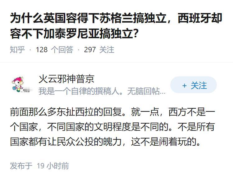 为什么英国容得下苏格兰搞独立,西班牙却容不下加泰罗尼亚搞独立?