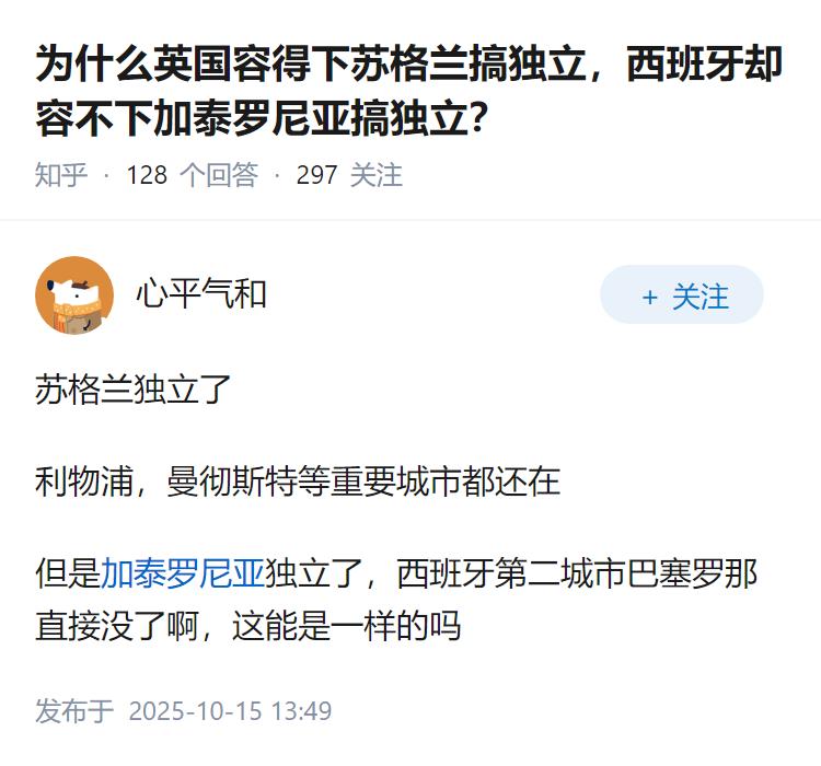为什么英国容得下苏格兰搞独立,西班牙却容不下加泰罗尼亚搞独立?