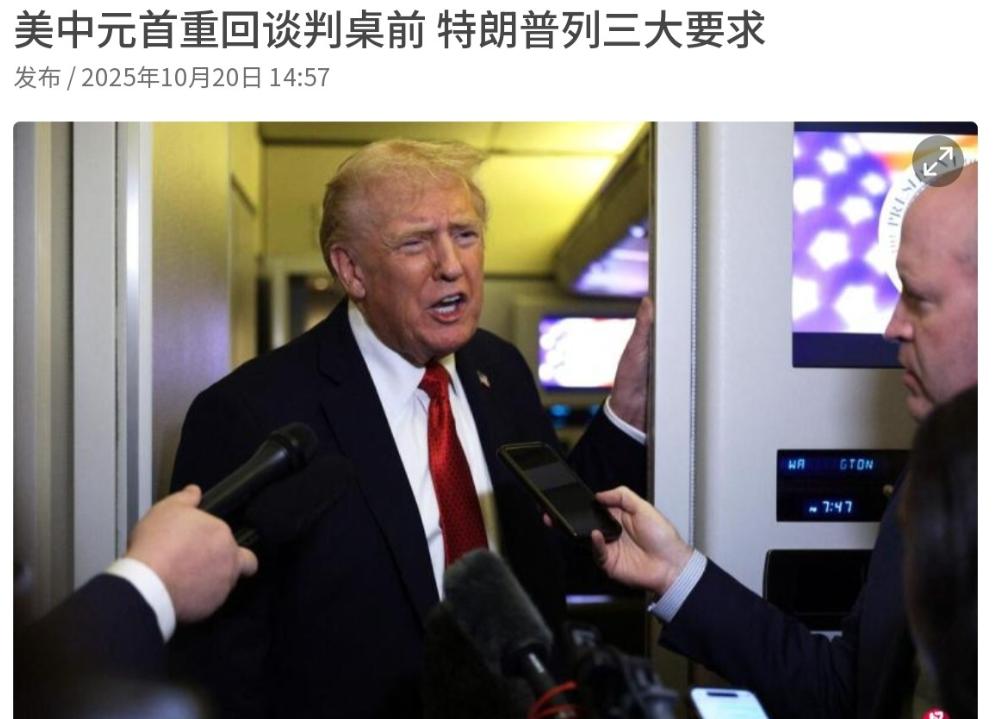 特朗普扔出三个条件,要求我们答应!10月20日,根据外媒报道,特朗普星期天(10