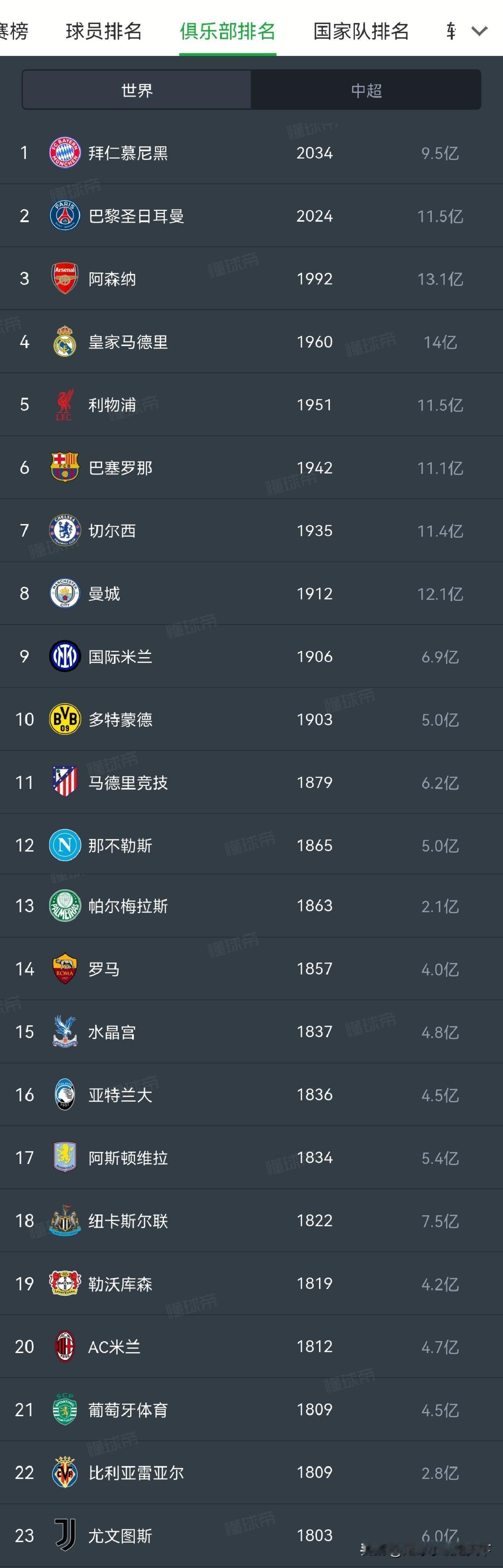 德转足球俱乐部最新身价榜!前20里英超占11席,西甲3席,意甲3席,德甲2席,法甲1席。 其实身价就是个很虚的数字,并不完全等同于实力。身价并不能代表成绩,英超是赚得多,但花钱买人也贵,大量资金为溢价买单。 前10里面只有巴黎和拜仁才是实打实的身价。别的英超和西甲的球队身价都太虚了。 你看拜仁身价看着跟热刺差不多,但实际上主力阵容吊打热刺,替补席差不多。 话说这热刺,纽卡,身价凭啥比国米高?还有在降级区的诺丁汉森林居然和国米身价就差五千万你敢信?