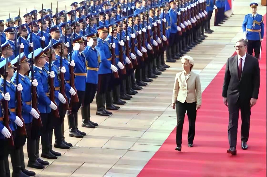 实在是欺人太甚了 10月9日,塞尔维亚总统武契奇参加欧盟西巴尔干领导人峰会,竟没有被安排座位,只好自己搬了一把椅子坐在角落里,而主持峰会的欧盟委员会主席冯德莱恩见此情形,更是露出非常得意的笑容。 10月15日,冯德莱恩访问塞尔维亚,武契奇还安排她检阅了仪仗队。两人举行会晤时,冯德莱恩更是翘着二郎腿,全然一副高高在上的样子。 想问,武契奇这般受尽屈辱、忍气吞声,仍想极力推动塞尔维亚加入欧盟,真的能得到促进国家发展的机会吗? 武契奇 冯德莱恩讲的话靠谱吗?