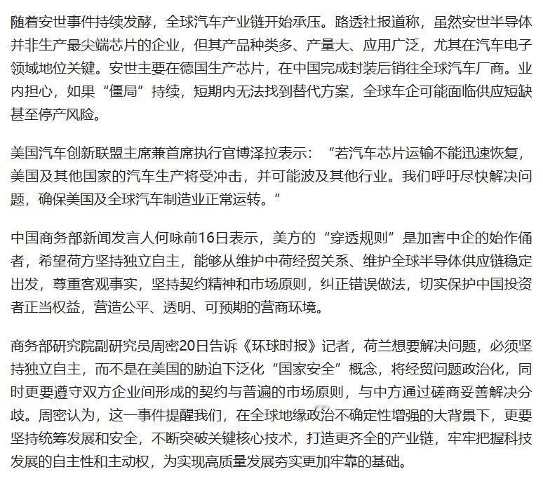 荷兰称将与中方化解安世僵局头号创作者激励计划中国在安世事件中别无选择,必须硬刚到底,不仅不能让荷兰得到任何便宜,还必须让荷兰付出沉重的代价,否则其他国家就会纷纷效仿敲诈勒索中国。一个欧洲小国,竟然不顾市场规则随意查扣中国企业损害中国利益,这背后无疑是美国在怂恿和支持。狠打荷兰既是立威,也是打他背后的美国主子。无论会因此承受多大压力和利益损失,都必须让荷兰服软,同时要把产业在国内完善起来,不能让外国随意卡我们的脖子。对荷兰这样的国家,必须出重手才行!