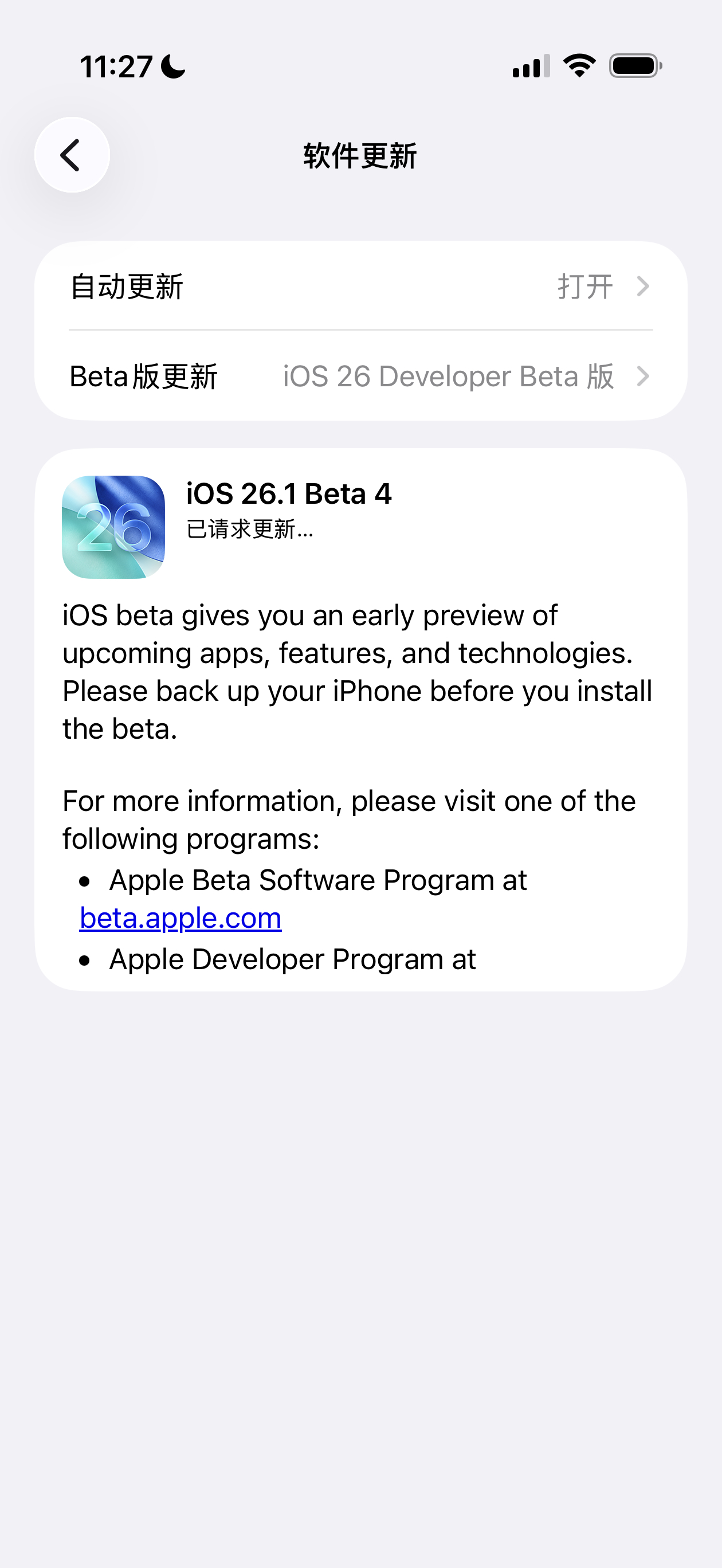 iOS 26.1 beta 4 今天凌晨推送了[并不简单]这个版本加入了液态玻璃的显示效果选项,可以在「透明」和「有色」两种效果间切换[哆啦A梦吃惊]居然给自定义选项了[哆啦A梦吃惊]