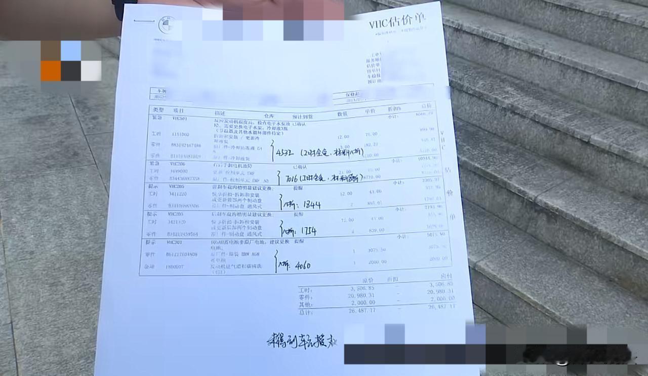 金华义乌,一女子的宝马车被宝马4S店检测出2页纸的问题,修理费达21000元。该