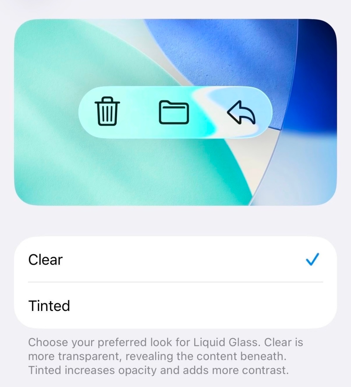 iOS26液态玻璃效果能关了液态玻璃不太看得清字吧,看的好累。据说是为未来的AR眼镜做准备的。目前看问题不少? ​​​