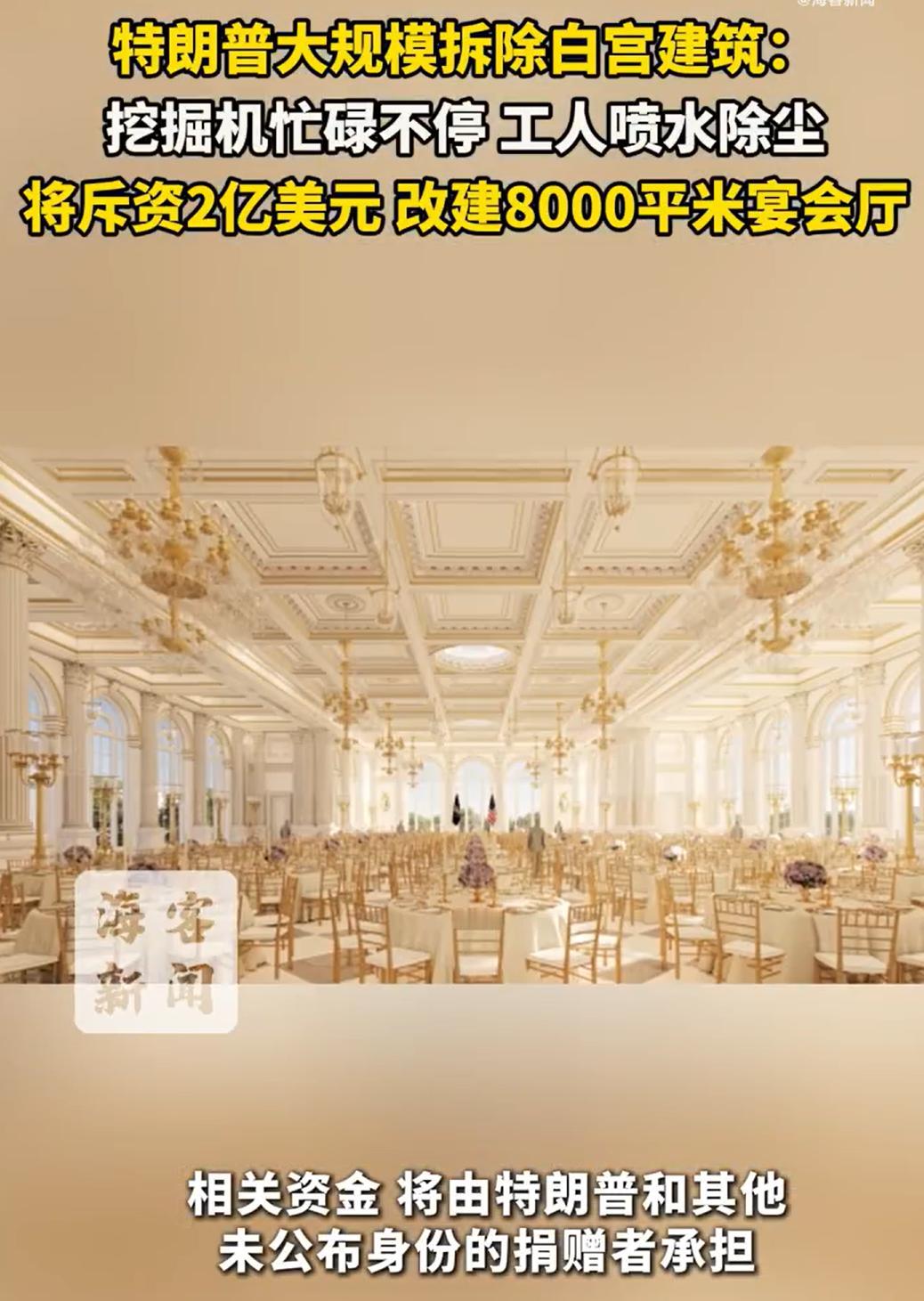 开始拆白宫的建筑了,老特果然是地产商出身,太懂建筑了。 那么大个白宫,之前居然没有宴会厅? 太不可思议了。 每次聚会,都只能站在草坪上,虽然是环保吧,但不经是户外,遇到个刮风下雨,要么取消聚会,要么就忍受狼狈。 现在好了,老特将建一座能容纳六七百人的宴会厅。 这档次,一下就上来了。 白宫之后,下一个需要改建的会是哪呢?