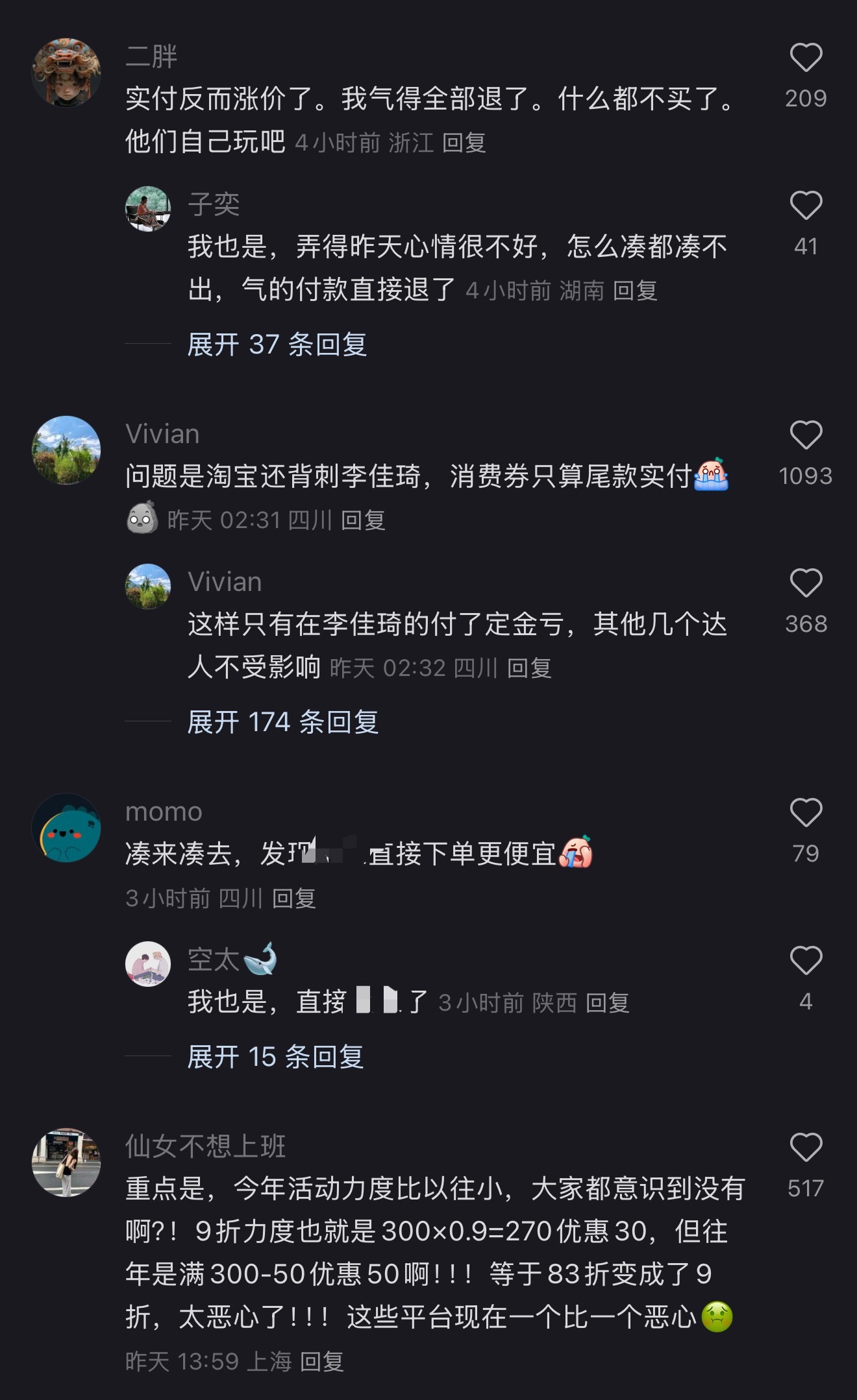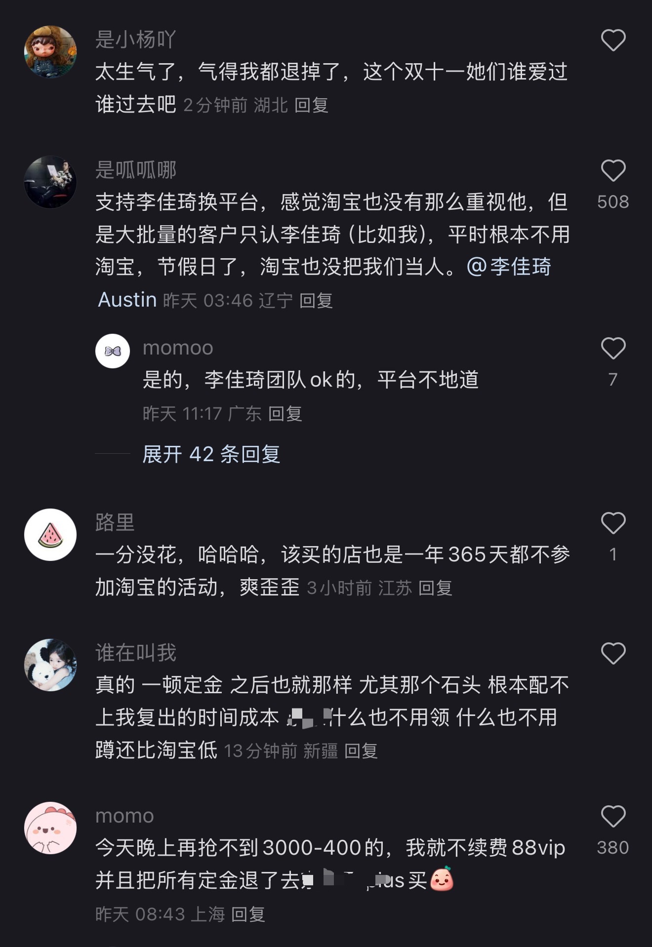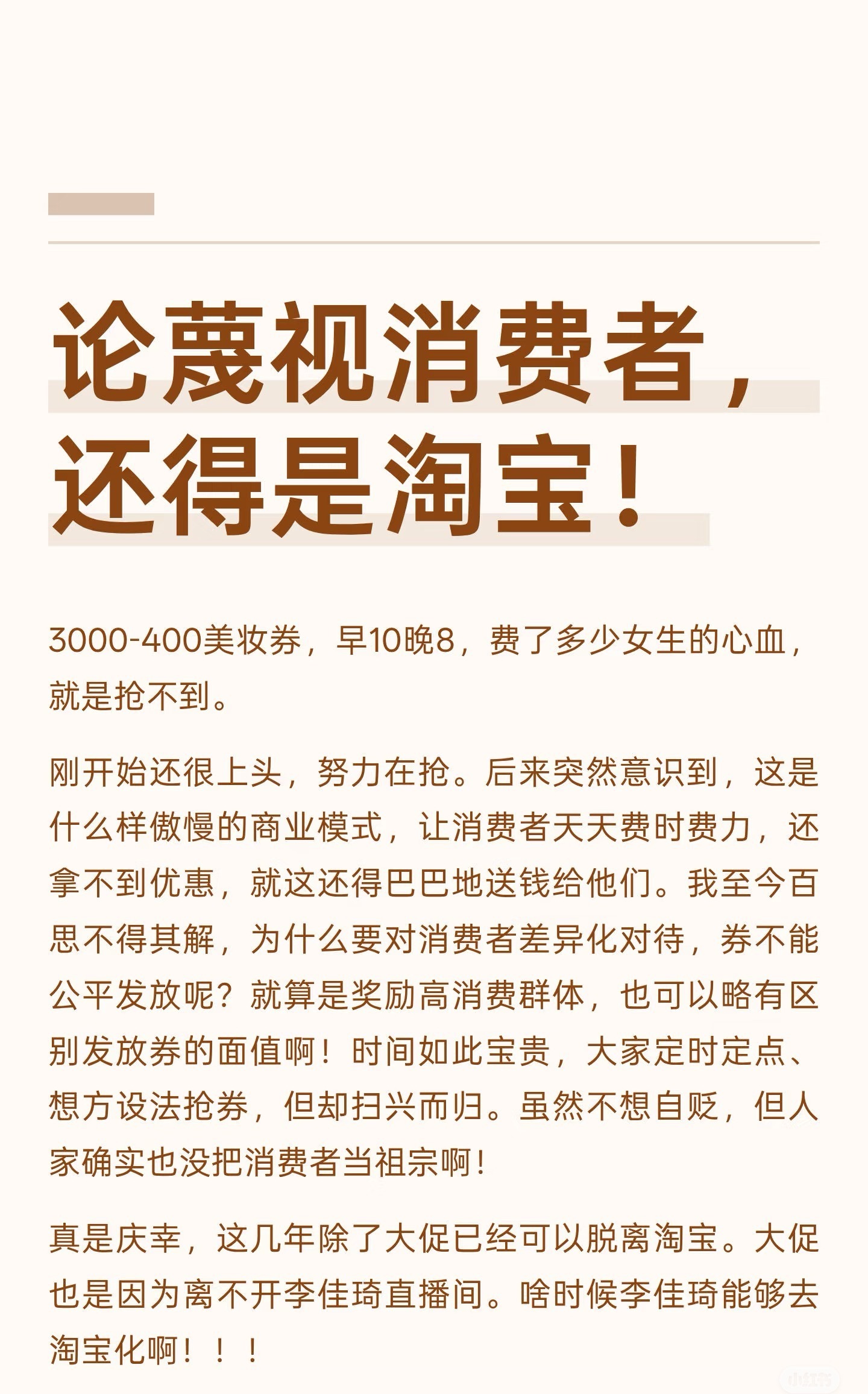 网友吐槽淘宝蔑视消费者,背刺李佳琦