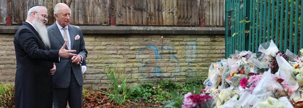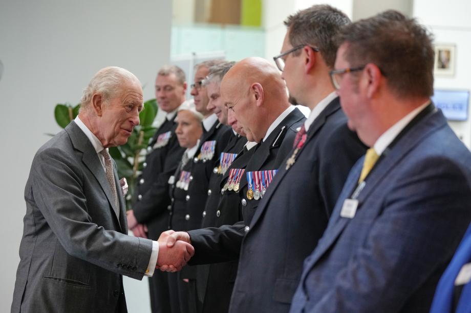 2025年10月20日,国王访问了希顿公园犹太教堂和曼彻斯特大都会警察总部,以表达对犹太社区的支持并会见紧急服务部门。 国王前往曼彻斯特,继续表达他对犹太社区以及10月2日在海顿公园犹太教堂袭击事件中受影响者的支持。 在访问期间,陛下会见了社区成员,包括那些在10月2日袭击事件中在场的人。 在曼彻斯特警察总部,国王会见了曼彻斯特警察部队、急救服务和消防与救援服务的代表,感谢他们为支持当地社区所做出的努力。 在总部,国王听取了代表大曼彻斯特警察、消防和救援以及救护车服务的工作人员关于他们应对最近事件和保护该地区人民的职责的汇报。 当地宗教领袖也出席了警察总部会议。国王有机会与宗教领袖讨论社区关系问题。