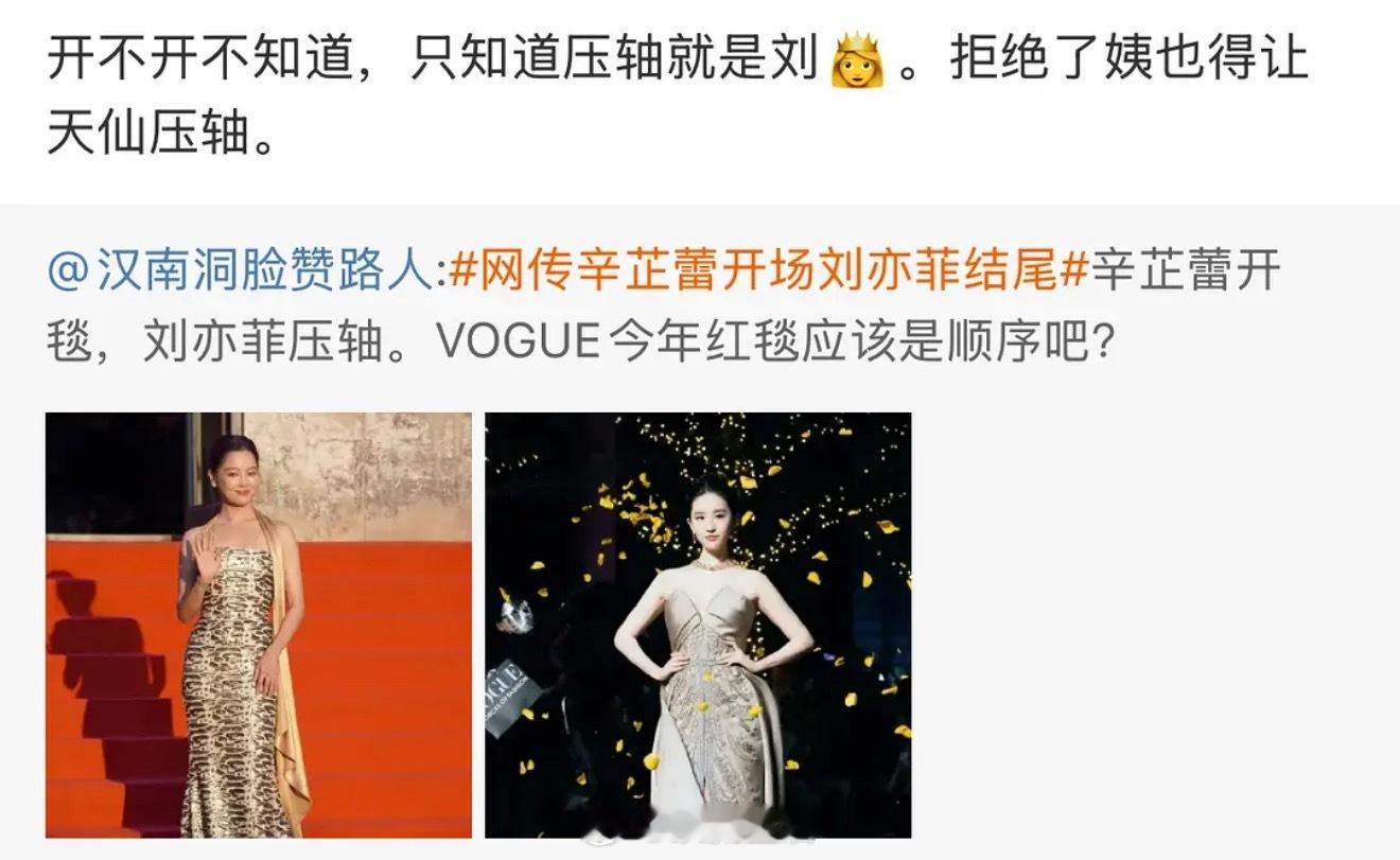 网传辛芷蕾开场刘亦菲结尾我的天,刘亦菲排面已经到这种程度了?