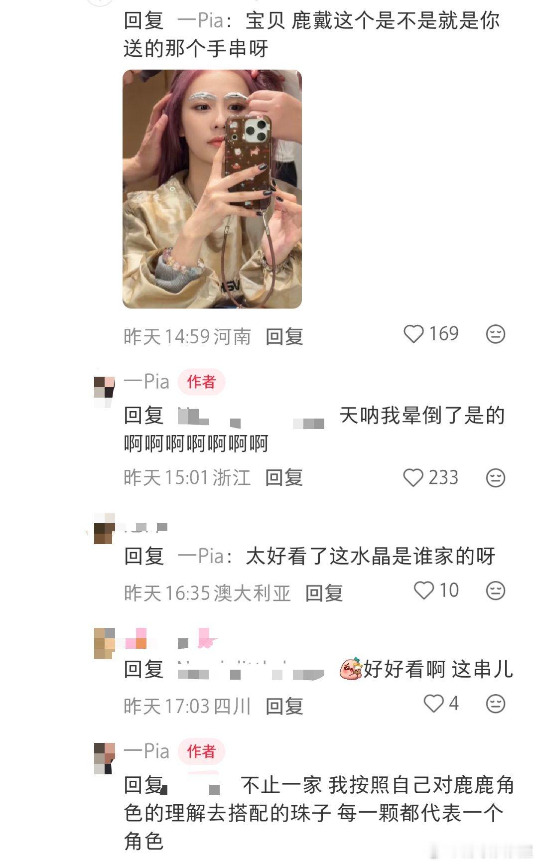 白鹿的染发vlog里一闪而过的手串是粉丝送的诶,而且她专门为白鹿挑的珠子,每一颗都是对应着白鹿演过的一个角色[柯基]