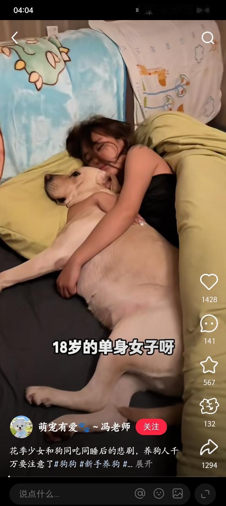 震惊!花季女子和狗狗同吃同睡后,肚子居然大了! 十八岁单身女子和狗狗同吃同睡半年后,感到腹部肿胀,还伴有阵痛。去医院检查后呢,情绪失控,痛哭流涕。 原来她从小就喜欢狗,而自己又是独居,为了缓解孤独,从市场上买了一条狗。这条狗性格乖巧,女子很喜欢,于是吃睡都在一起。 可是半年后,女子肚子突然涨大,伴随疼痛。去医院检查,原来是感染了寄生虫,花了不少钱又遭了罪!你说这糟不糟心,在这提醒大家和狗保持距离,定期给宠物做驱虫,你好它也好。 人有情狗无罪,大意引病缠 终是人狗殊途,养狗,切莫疏忽大意! 养狗 宠物