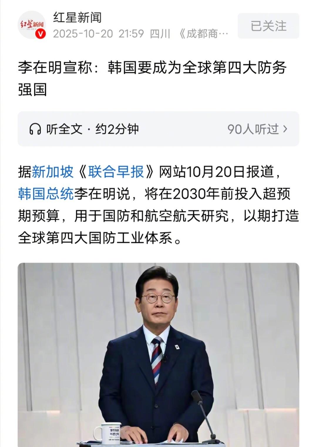李在明要让韩国国防全球第四韩国总统李在明宣称:韩国要在2030年前成为全球第四大