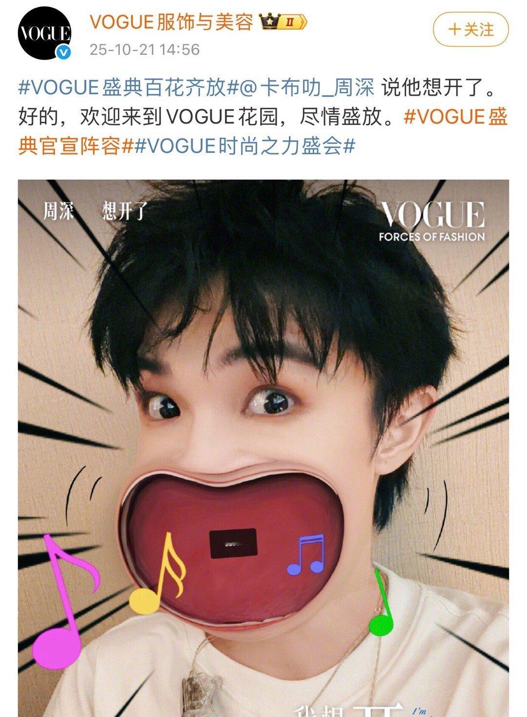 VOGUE盛典官宣阵容官宣周深,期待一下,这次应该又有舞台吧[太开心]