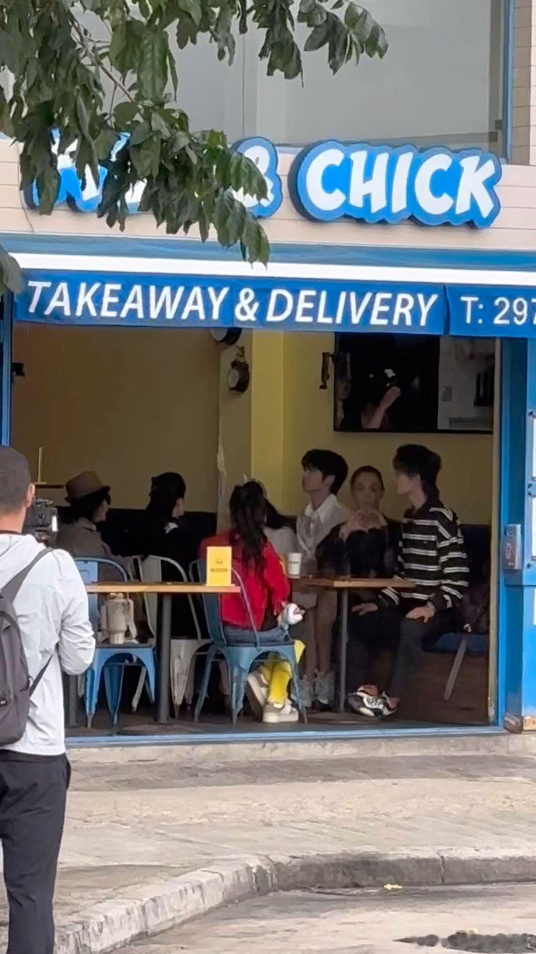 张天爱跟素人合影,胯真的好宽,大宅院似的