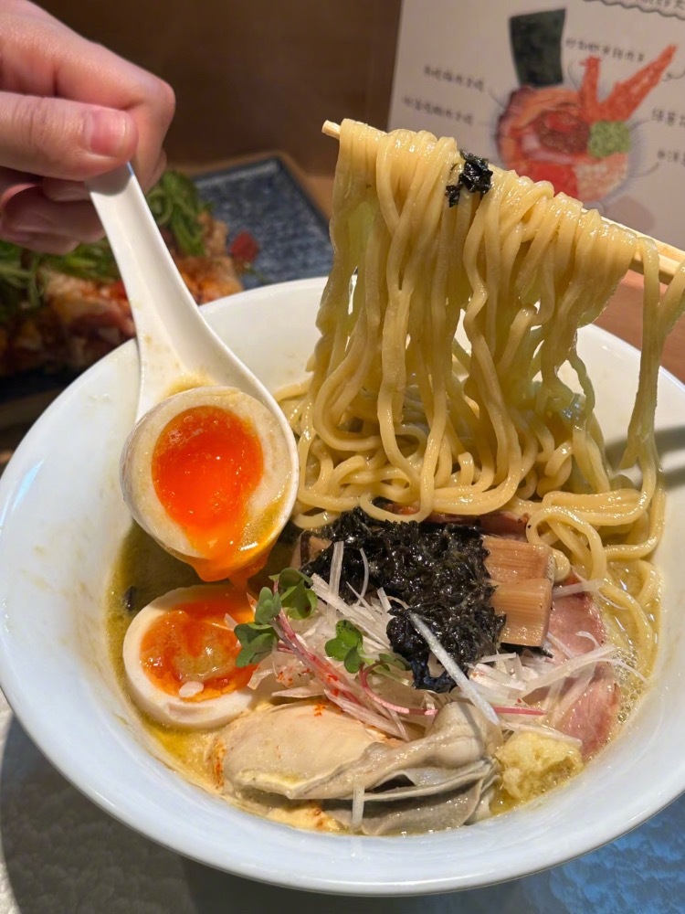 汤底醇厚的牡蛎拉面太美味了,汤都给喝光🤤
