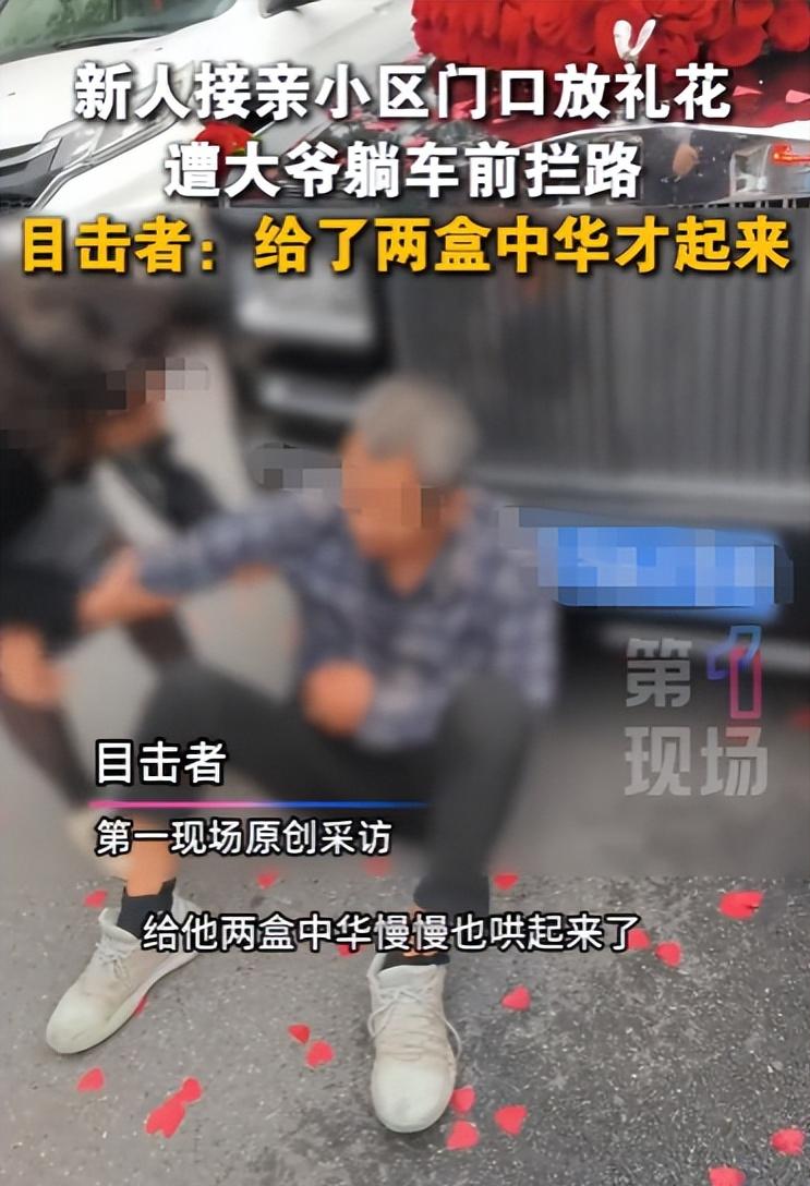 “太缺德了!”10月20日报道,河南驻马店,一大爷因不满新人结婚放礼花,竟然直接躺在婚车前拦路,不管谁上前劝说大爷都无动于衷,最终给了两盒中华烟才起身离开,网友:结婚遇到这种人也是糟心![紫薇别走] 大爷在清扫新人燃放礼花后留下的纸屑,地面还有些潮湿,彩色纸片黏在地砖上怎么都扫不干净,打扫了半天,眼看婚车队伍准备出发,大爷的情绪突然就上来了。 围观的亲友们轮番上前劝说,有人递烟,有人说好话,大爷就是不起来,婚礼的吉时一分一秒在流逝,新娘的妆容在焦急中开始花了,伴娘团急得直跺脚,僵持了将近二十分钟,新人家属实在没办法,最后递上两盒中华烟,这才把人劝走。 本该是喜气洋洋的出门仪式,就这样变成了一场让人心里添堵的拉锯战,新郎后来在朋友圈感慨:“婚礼当天最难的不是接亲游戏,是这突如其来的考验。” 自己婚礼当天遇到这种情况最实际的办法是保持冷静,不要起冲突,毕竟大喜日子,谁都不想闹得不愉快,可以先尝试沟通,给对方一些喜糖或小额红包表示心意,但如果对方得寸进尺,提出过分要求,就要果断报警了。 现在不少新人会提前跟婚庆公司沟通好应对预案,甚至在婚礼路线上避开一些“高发路段”,虽然听起来有些无奈,但确实是目前比较稳妥的选择。 网友热评: “一人一百加三条烟”,这已经不是讨喜,而是赤裸裸的“拦路抢劫”。 “这不就是车匪路霸吗?以前锁婚车链条,后来摆瓷碗讹钱,现在直接明抢了!” “现在有些讨喜的已经是“专业团队”操作了,兜里揣着对讲机,专门蹲守酒店,一有婚车就来,甚至还会呼叫同伙。” “有老人组团坐轮椅拦车,不给钱就集体“碰瓷”。” “这种强拿硬要财物的行为,已经涉嫌违法,情节严重的完全可以处以拘留和罚款,如果因为担心耽误吉时而一味忍让,只会助长这些人的嚣张气焰,就应该让他们受到法律的惩戒,才能有效遏制这种歪风。” “可以给婚车装上“自动喷红包机”,或者直接拉个横幅写上“此车已破产,红包靠众筹”,用幽默的方式化解尴尬。” 你觉得遇到这种“天价讨喜”的情况,是应该破财免灾赶紧了事,还是坚决报警处理?如果你是新人的朋友,在现场你会怎么做? 欢迎在评论区分享你的看法和经历! 信息来源:搜狐网
