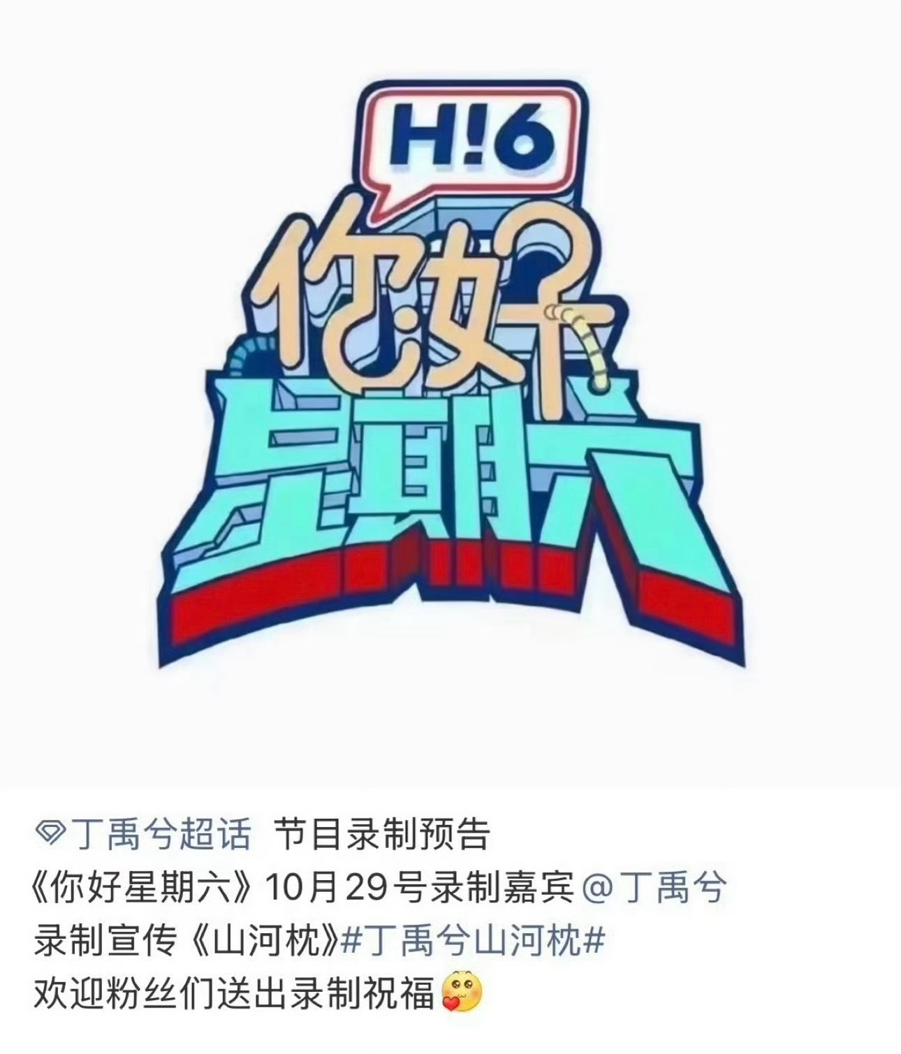 丁禹兮将录制你好星期六宣传新剧《山河枕》,终于要和我们卫韫见面啦!!