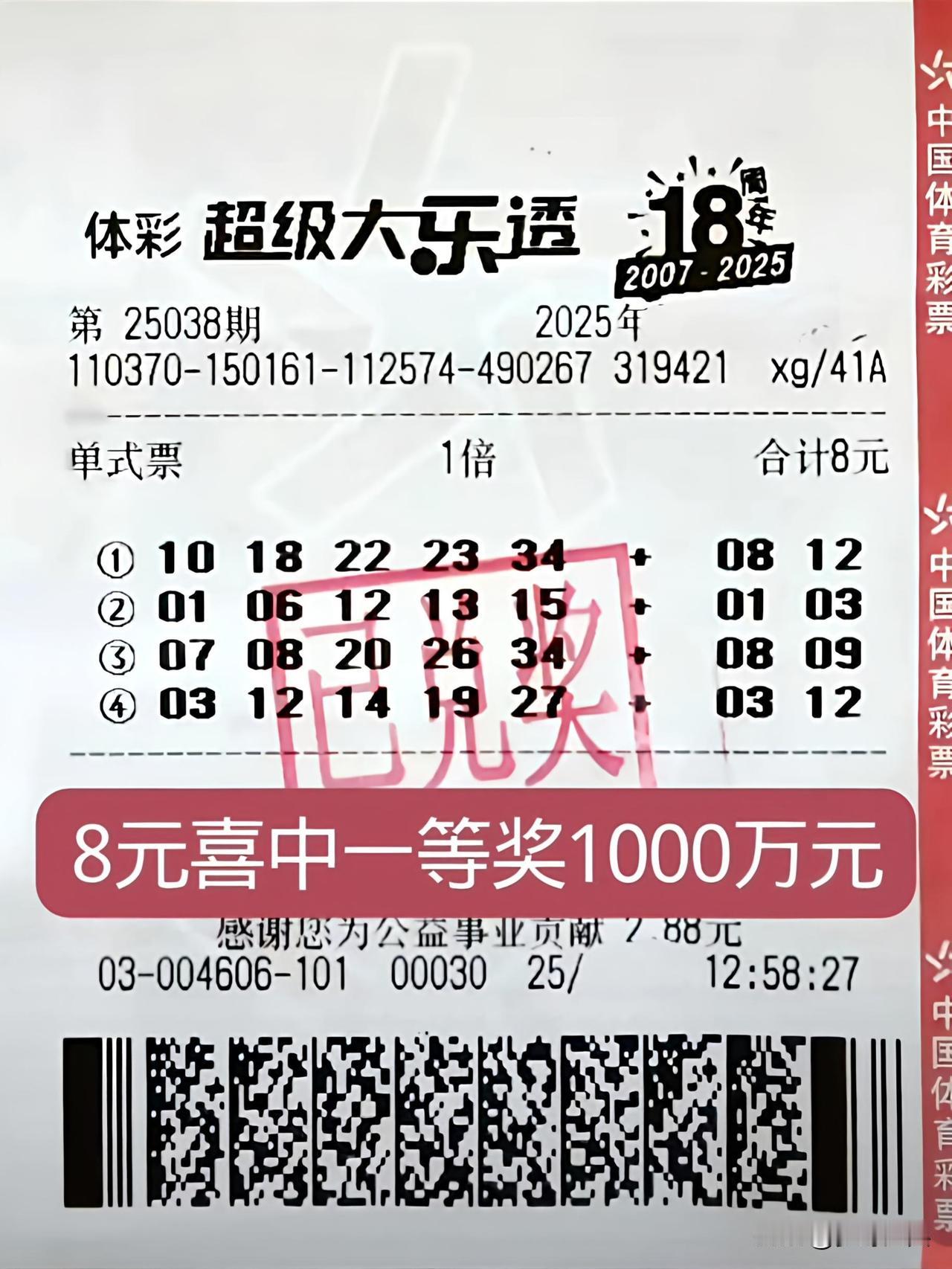山东90后小姐姐花8元买彩票,喜中一等奖1000个W,真的太幸运了,这还是一张机