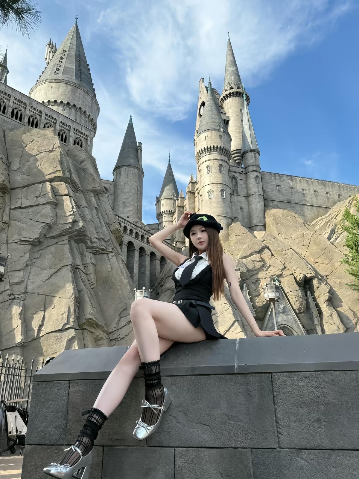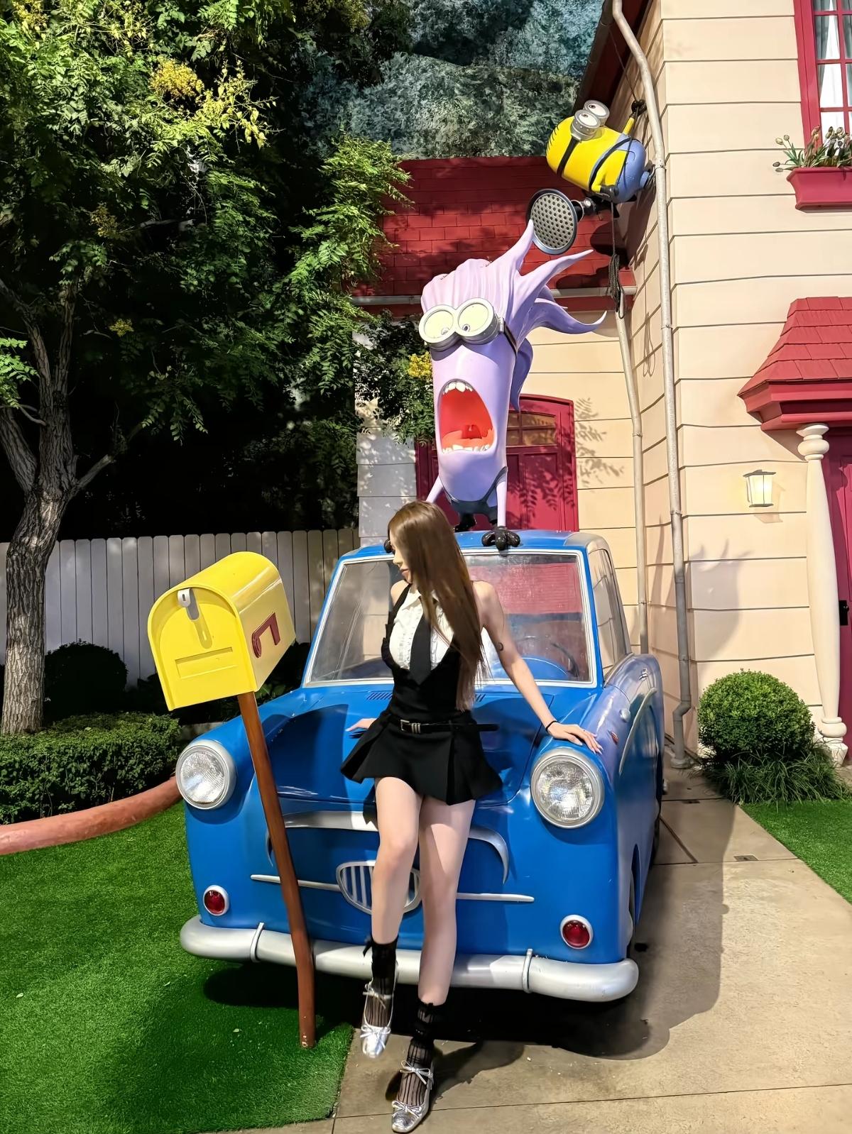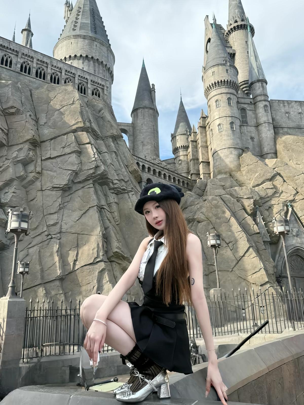 打卡环球影城,时尚少女与地球仪合影!🌍✨治愈系少女写真怎么拍