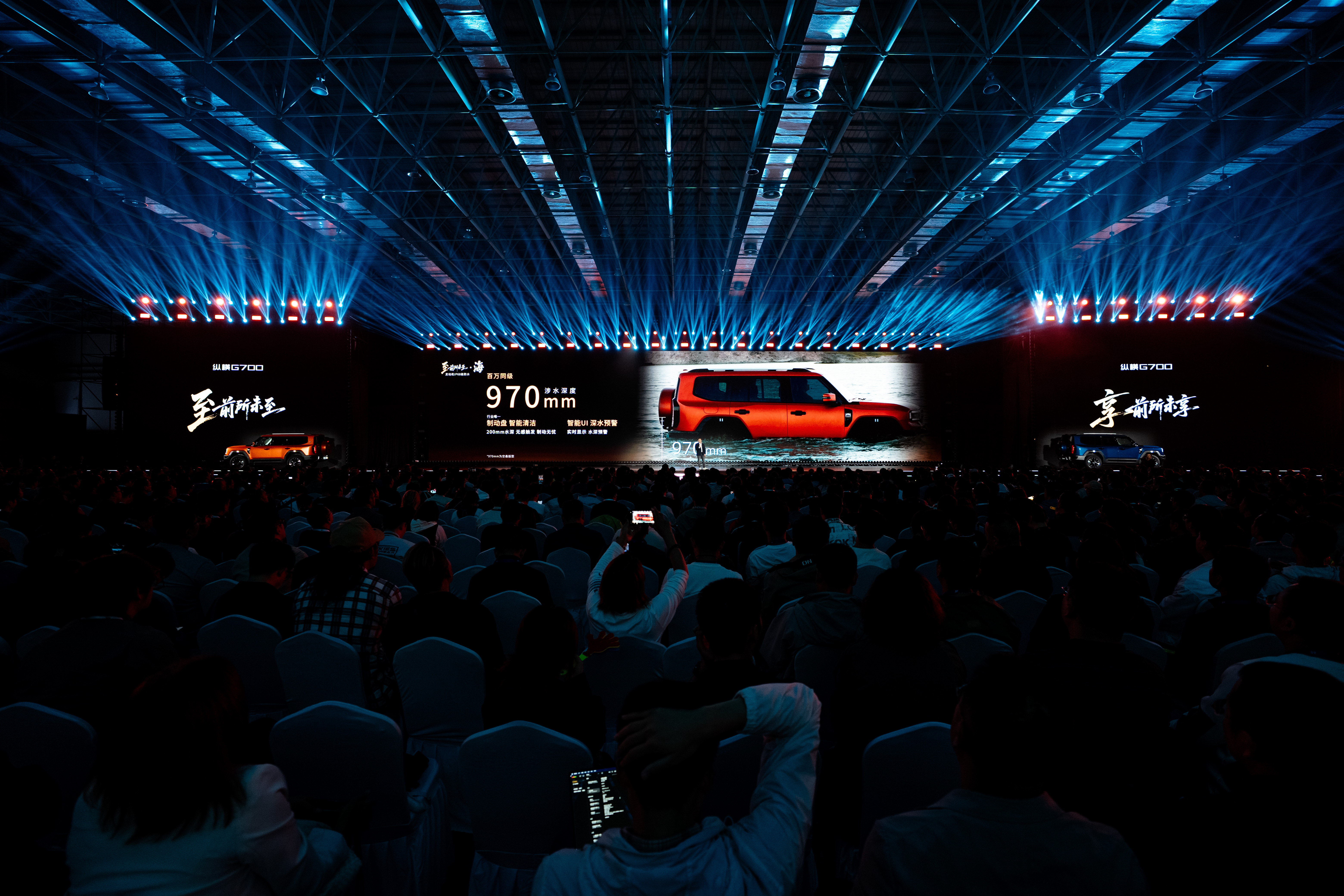 对比路虎揽胜,纵横G700拥有全球首创ARK方舟两栖技术:800V推进器推力13000N,航速达7km/h;静态浮水尾倾仅0.5°,吃水线980mm(不到轮眉)更安全;全域密封无需额外保养,真正实现“陆海双修”的出行自由!
