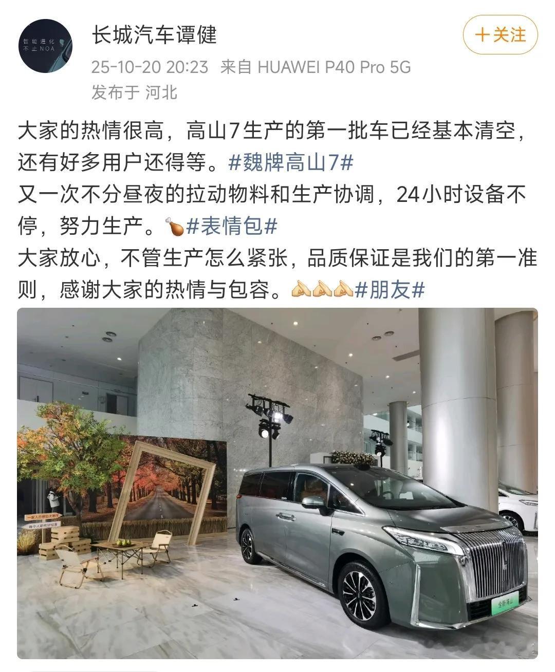 这么多年头一次,魏建军亲口宣布高山9月份全国销量榜首,这个月主打性价比的高山7也上市了,车身比阿尔法还长,售价只有阿尔法的三分之一,10月份高山销量破万毫无悬念,老魏是个听劝的老板,老高山销量拉胯,立马改进,结果mpv市场大洗牌,新高山凭借hi4+智驾+豪华成最大黑马,老魏这心里比过年还高兴。