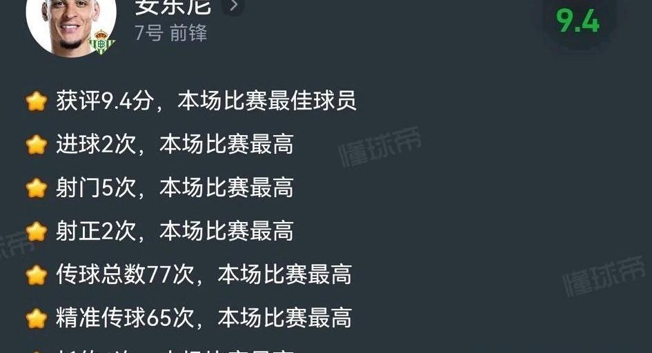 安东尼在贝蒂斯踢球,和在曼联时简直是两个人。 面对比利亚雷亚尔,他梅开二度,最后时刻冷静打进绝平球,这完全是顶级球星才有的表现。 这一下就让人看明白了,有些球员不是能力不行,是真的去错了地方。 在曼联,他背着近一亿欧元的身价,留给球迷的印象更多是原地转圈。巨大的转会费和外界的审视,把他压得喘不过气,战术上他也不是那个绝对的核心,踢得非常别扭。 到了贝蒂斯,情况完全反了过来。球队直接把他当成进攻大腿,给了他无限开火权和战术地位。他成了球队的王,身边的人都在为他服务,这种信任让他彻底释放了自己。他不是那个需要适应体系的昂贵零件,他就是体系本身。 曼联花大价钱买来一个球员,却没有给他配套的战术和信任,最后只能看着他在别的球队发光发热。 这就引出了一个很有意思的话题。 一个球员的成功,到底是个人能力更重要,还是环境和信任更关键?