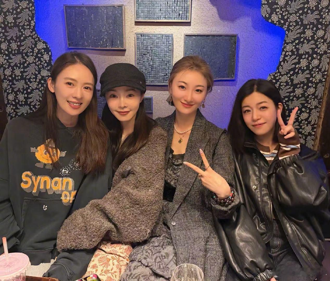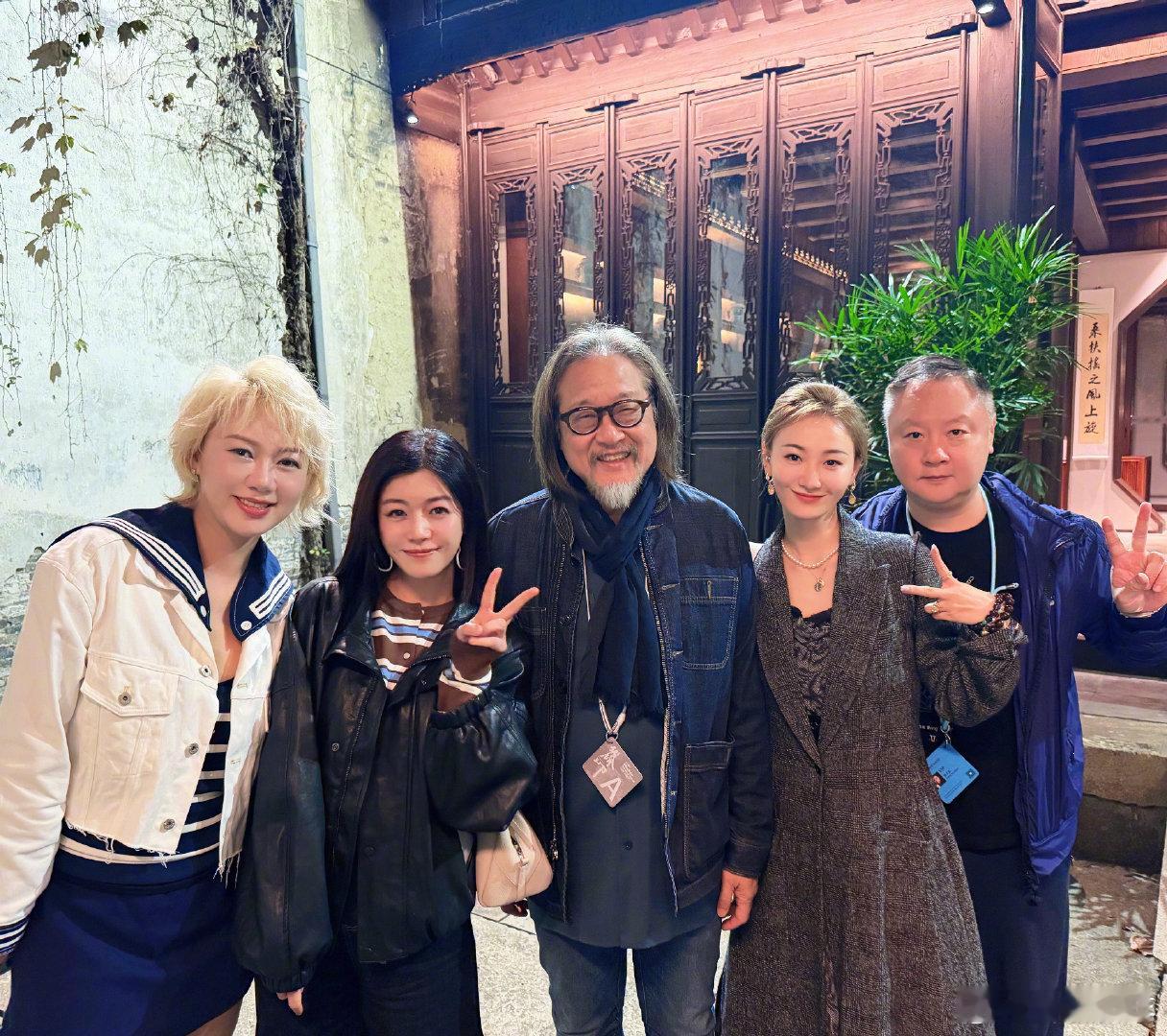 张天爱跟素人合影,胯真的好宽,大宅院似的