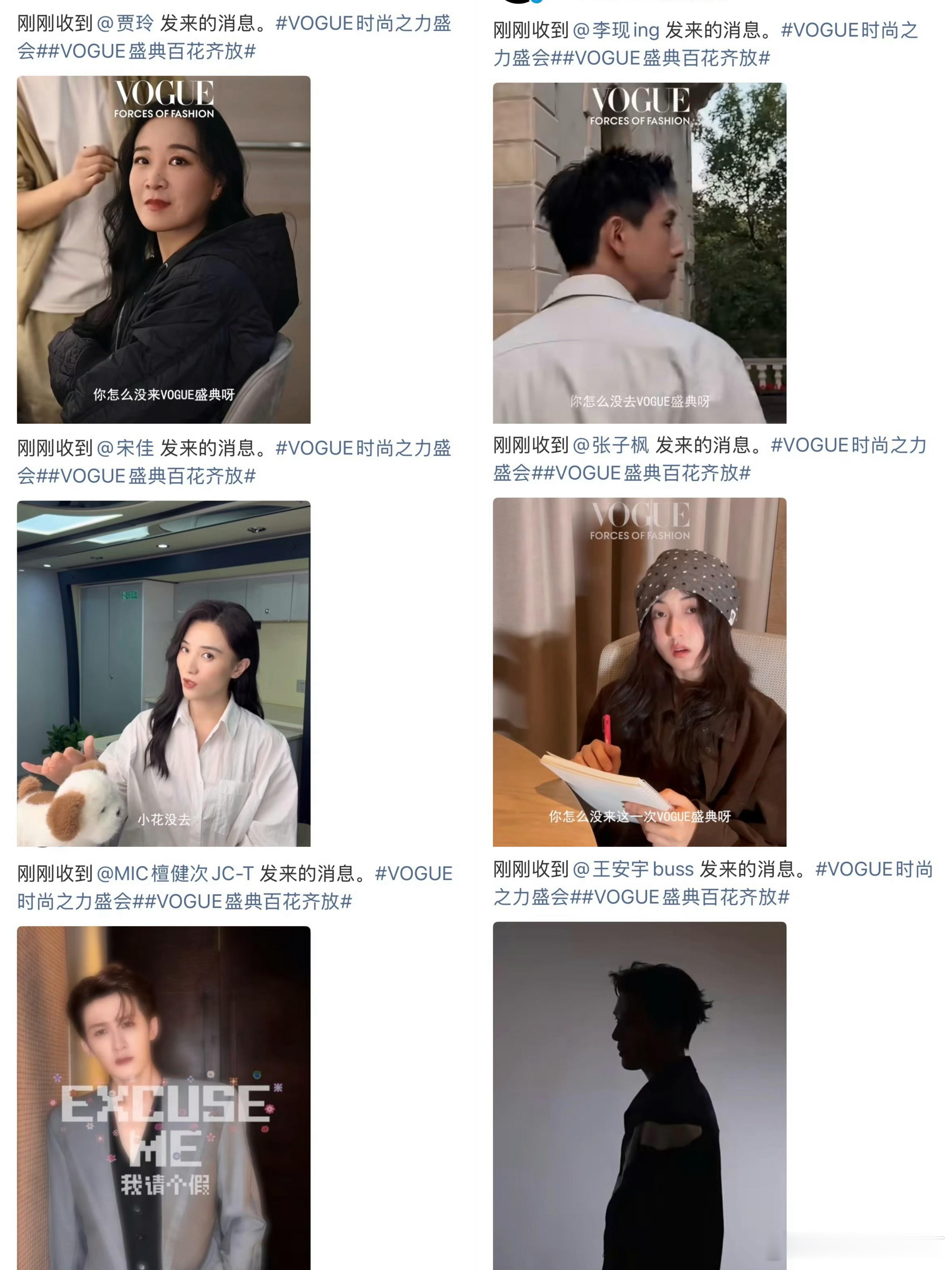 VOGUE请假的比上班的还多俺不中了!这个VOGUE还官宣了请假的明星哈哈哈哈!