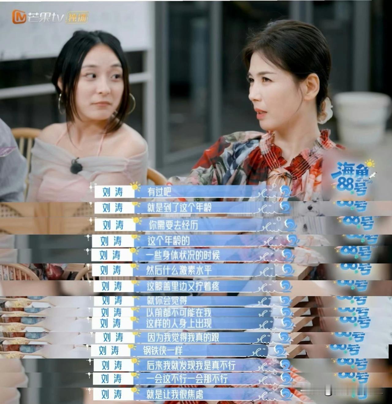 和一位在综艺节目组工作的朋友聊天,她提到了刘涛的近况。朋友说,屏幕上的刘涛总是光彩照人,好像有用不完的精力。 但最近的她,有了一些变化。朋友说,有次录制间隙,大家看到刘涛揉着膝盖,动作很轻。有人问起,她才淡淡地说,身体不像从前了,胳膊有时不太使得上劲,膝盖也会疼。她就那么平静地讲着,没有抱怨,只是像在说一件很平常的事。 朋友感慨,那个曾经像钢铁侠一样连轴转拍戏的人,现在也会被身体提醒要慢下来了。刘涛自己说,她从来不觉得年龄是个问题,但身体的这些信号,让她不得不思考。 激素水平的变化,关节的疼痛,这些细微的感受累积起来,成为一种真实的焦虑。她从不在拍戏时喊累,现在却要学着接受,有些动作需要悠着点。可能到了某个阶段,人都会这样。不是向年龄认输,而是更清楚地知道自己能做什么,不能强求什么。日子还长,慢慢走,反而能看得更清楚。