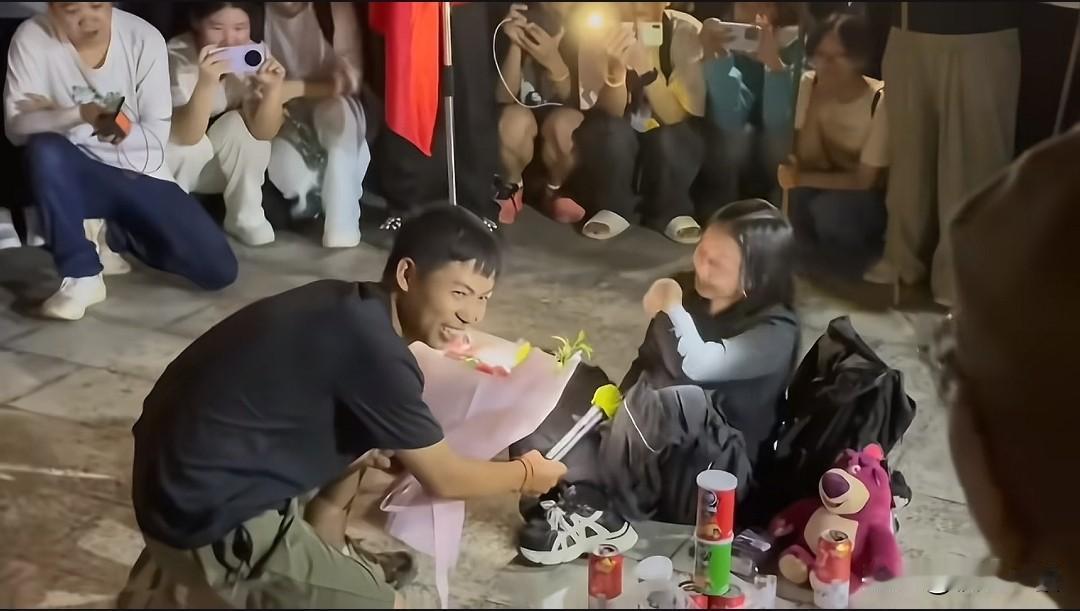 梧桐山表白,一个刚刚认识不久的爬山搭子,爬到山顶就跟她表白,人家腿软了,想跑都跑不掉,这是“一见钟情”,还是“一厢情愿”。 明眼人都能看出女生对他没有半点兴趣,结果这男生还硬要搞当众表白这跟集体霸凌有啥区别,这不纯纯把人架在火上烤。 女生知道要被表白就准备跑,但是被男的拉住了,旁边那些围观的路人帮着这个男的去堵女生,围的里三层外三层,看不出来女生很抗拒。 结果被热心群众给围起来,不让她跑,有的人真的是看热闹,不嫌事大,很明显看到女的不喜欢他,还要在那里起哄。 那个男孩拿个话筒,连表白的词都是对着手机念的,女孩接过话筒,说了一句“我拒绝”,你就应该识趣一点,道歉、驱散人群让她走,给自己留个体面。 女生面对这么多镜头,头都已经要埋在地下了,还带着他们起哄,你这是要众人逼迫她同意嘛。 我说白了,就算本来对你有那么一点好感,就你这一顿操作下来,恨不得你滚远点。