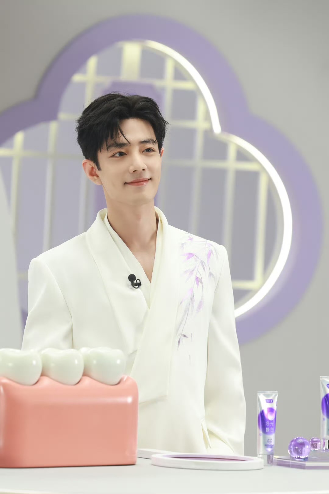 肖战[超话]肖战紫竹西装直播造型 肖战直播造型,紫色竹叶刺绣搭白西装,一整个国风